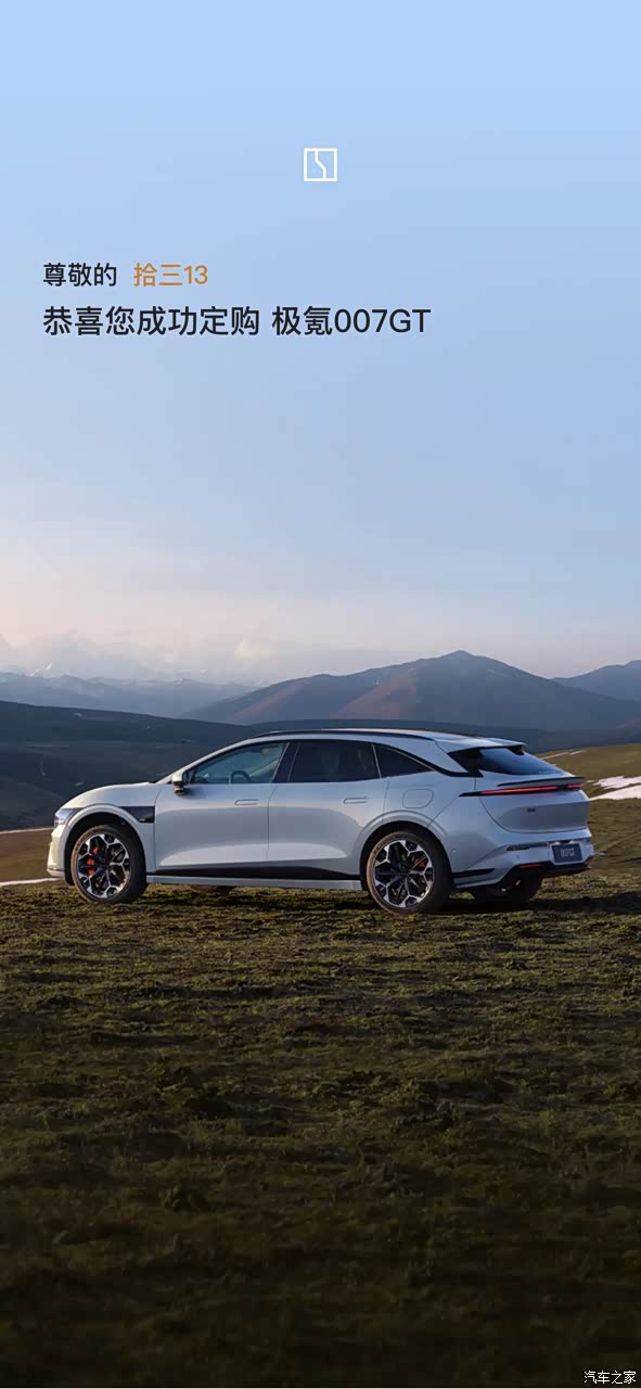 本来3月23号下定了小鹏的G6,结果一直没有配车,下定前销售说3个礼拜绝对能开上就定了,结果4月18号还没配车,后来极氪007GT上市后发现太帅了吧,太爱猎装车这个屁股了,立马去试驾了两次,终于忍不住又下定了007gt。唯一可惜的是小鹏的5000定金就没得退了,说只能保留一年。试驾的时候感觉很容易上手好开,然后配置也很丰富,音响非常好,这个是我特别看中的,悬挂软硬也可以调,这个也超级好评,结合自己的用车需求和预算就什么都没选配,选了最低配的75°金砖电池。今天正式提车,兴奋了好多天!一拿到手就开了玩了60km,爱不惜手,但是也发现了一个小小的缺点,路噪确实有些大,感觉有些轰鸣声,我试驾了两次都没发现,今天提车才感觉到,不知道是不是因为两次试驾车都是选装了20寸轮毂的米其林轮胎,有些人说19寸的米其林型号没20寸的好,除了路噪其他很安静,4门夹胶玻璃确实可以。
