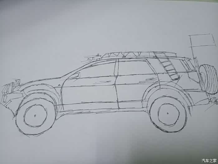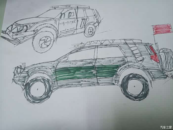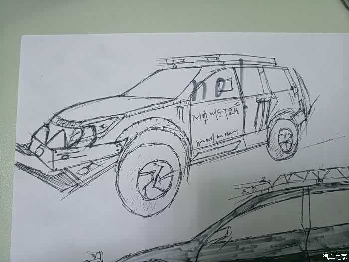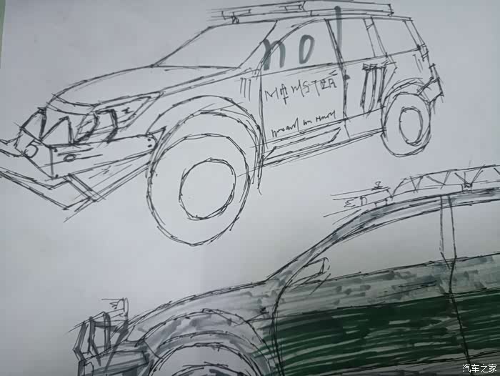 来一个测前面的手绘,为了节省画纸就在上面画了;