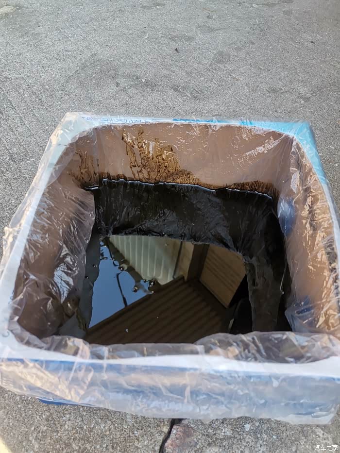 找了一个纸壳套着塑料袋,拿来装废机油。