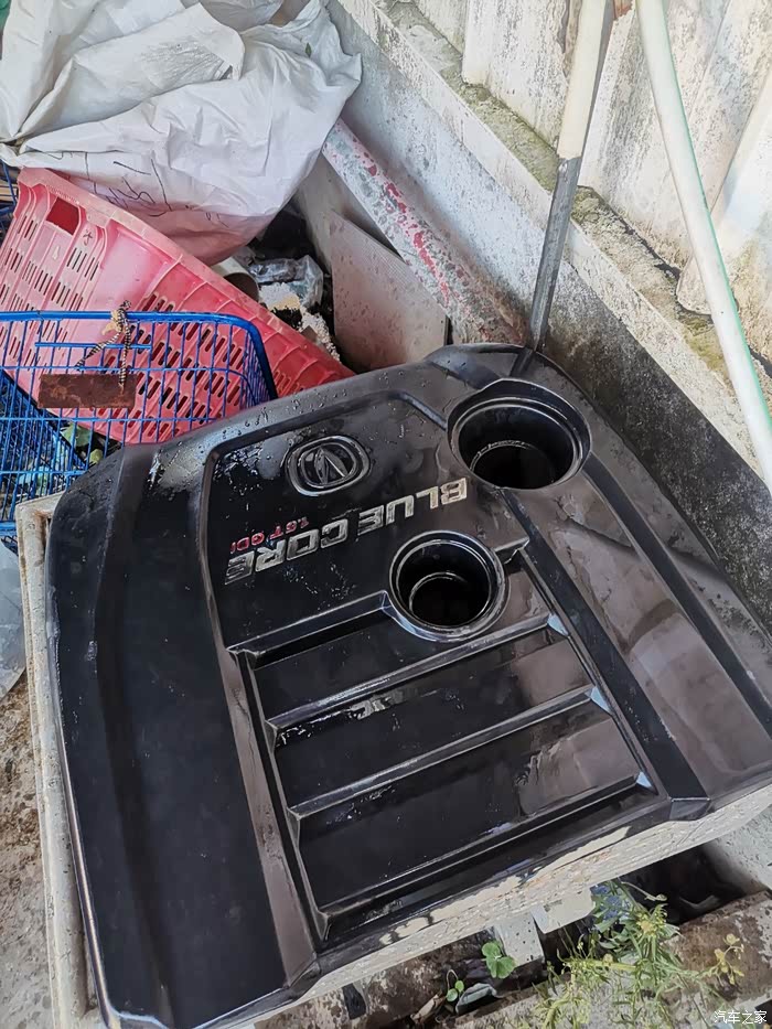 这是拆下来的发动机罩,有点脏了,拆下来洗洗,洗洗更健康。
