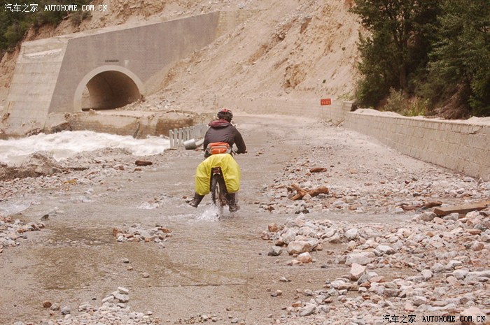 路被冲掉了,只能推行过,老婆不敢推,我推了2次