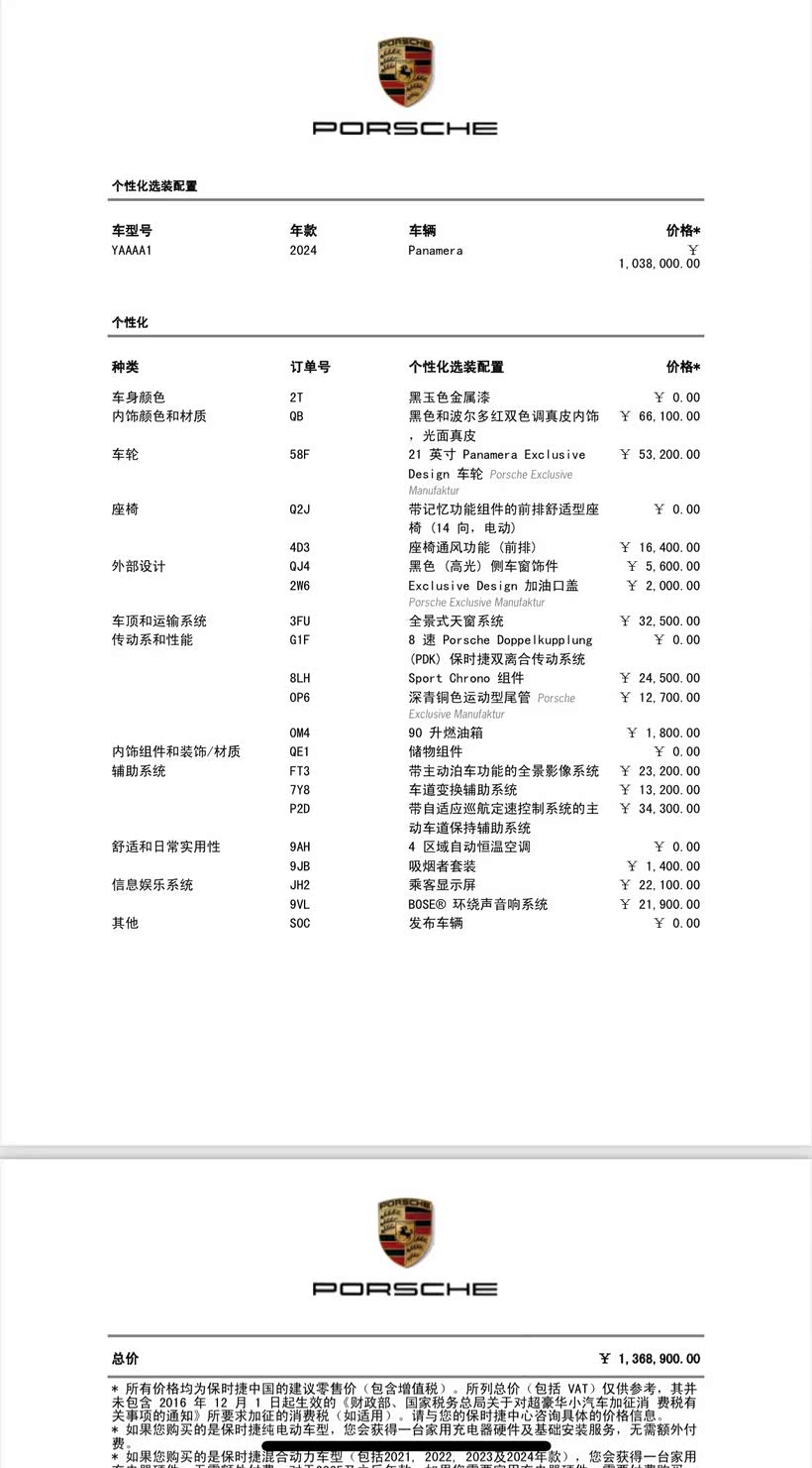 个人售,保时捷Panamera 2024款,0出险,