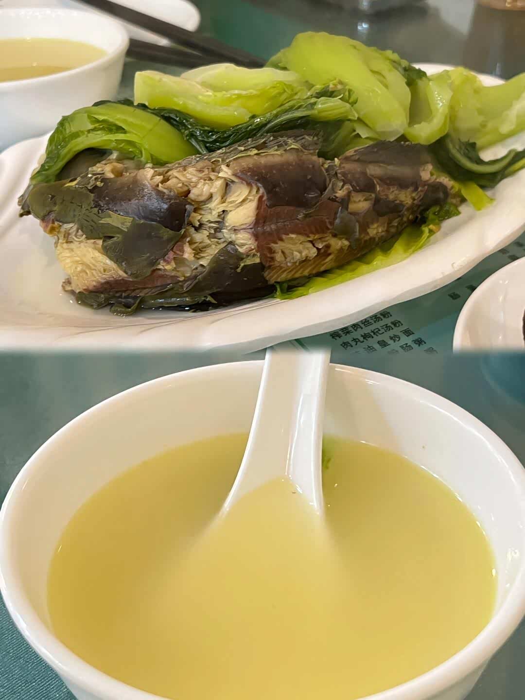 18:30驾车10分钟到南社古村的"南社人家",这家百年老宅改造的餐馆主打东莞传统"九大簋"宴席。老板推荐了适合家庭的精简版,有荔枝柴烧鹅、头菜蒸五花肉、清蒸鲩鱼和上汤桑叶,每道菜都带着古村烟火气。