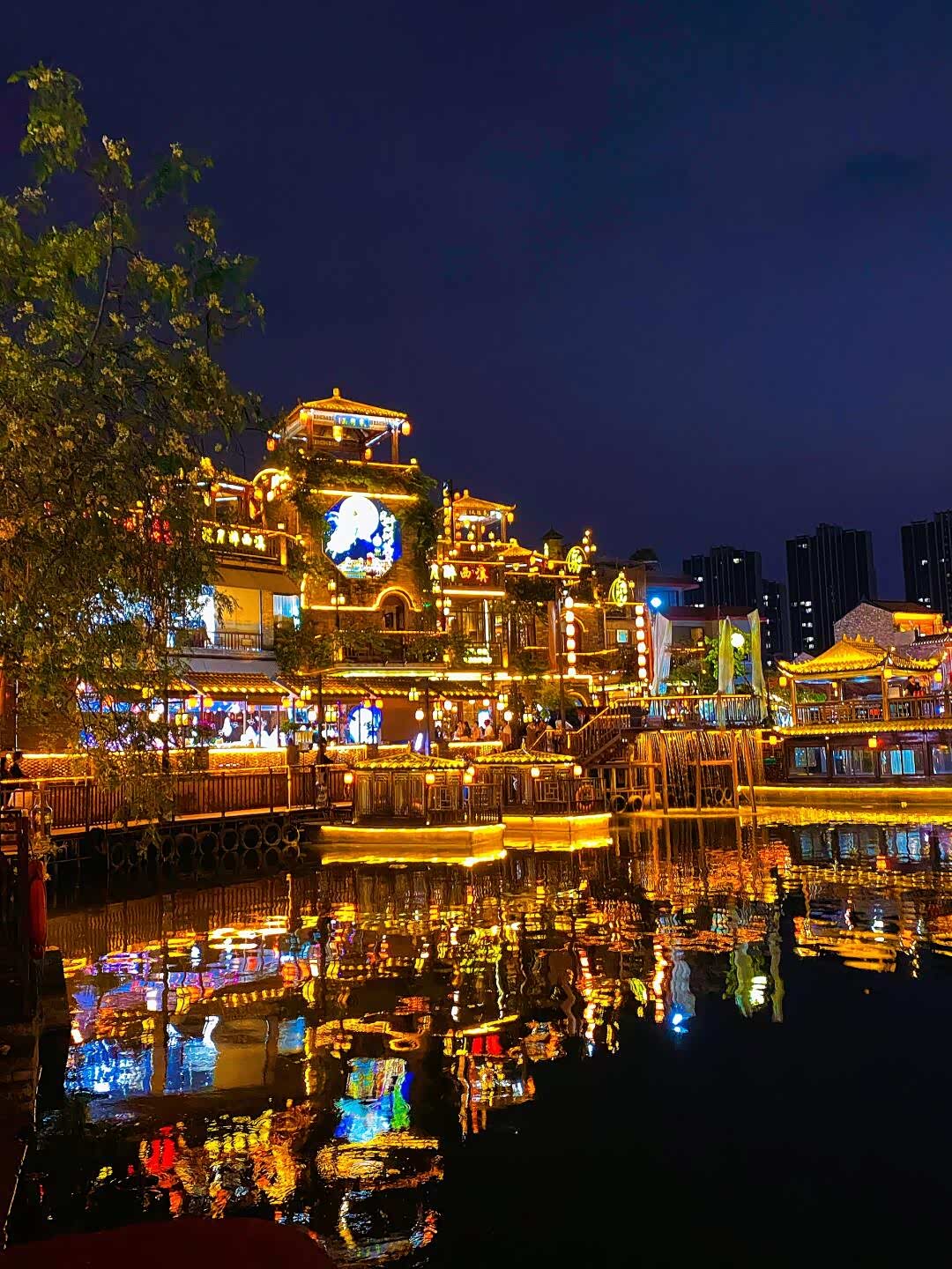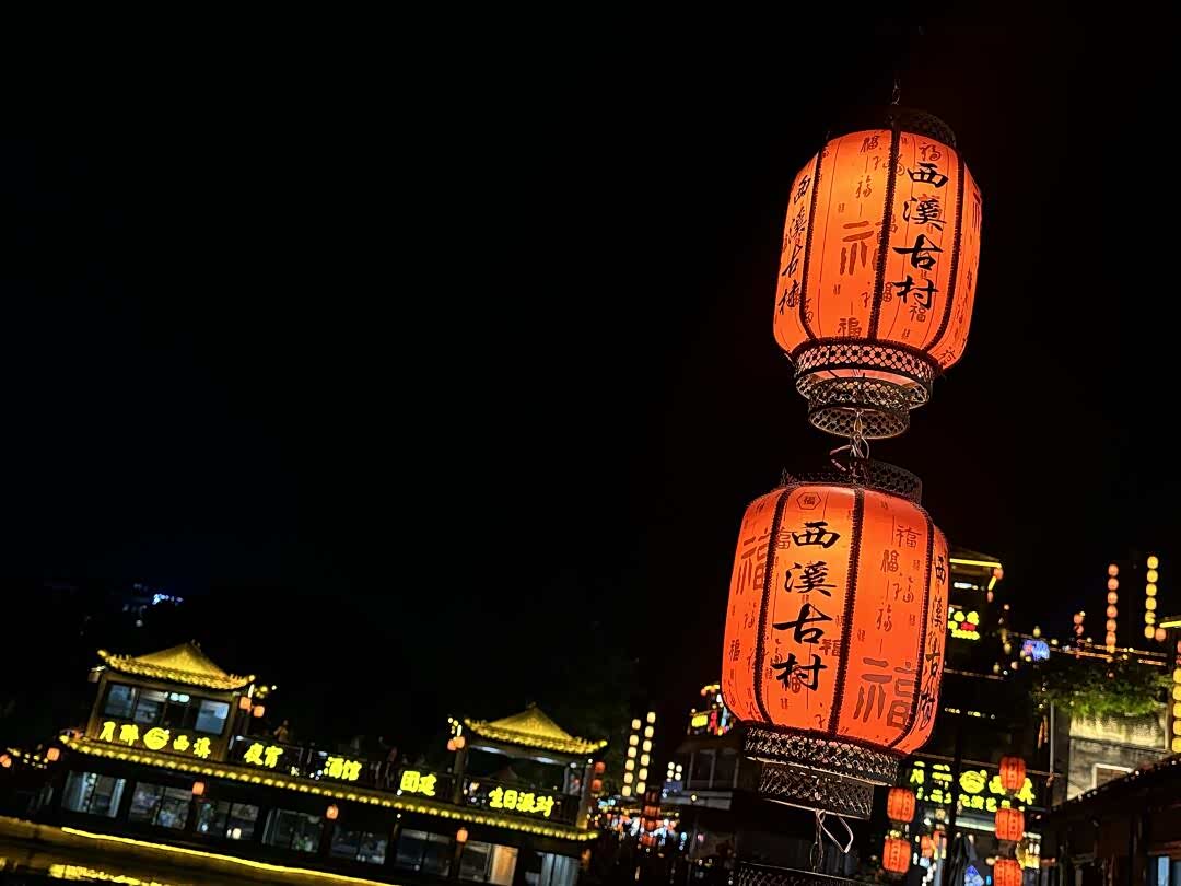 沿街美食店前排起长队,买了糖画和棉花糖,孩子们举着边走边吃。古村的灯笼渐次亮起,映照在池塘水面,恍若穿越回古代市集。老婆说这样的夜晚太有氛围感了。