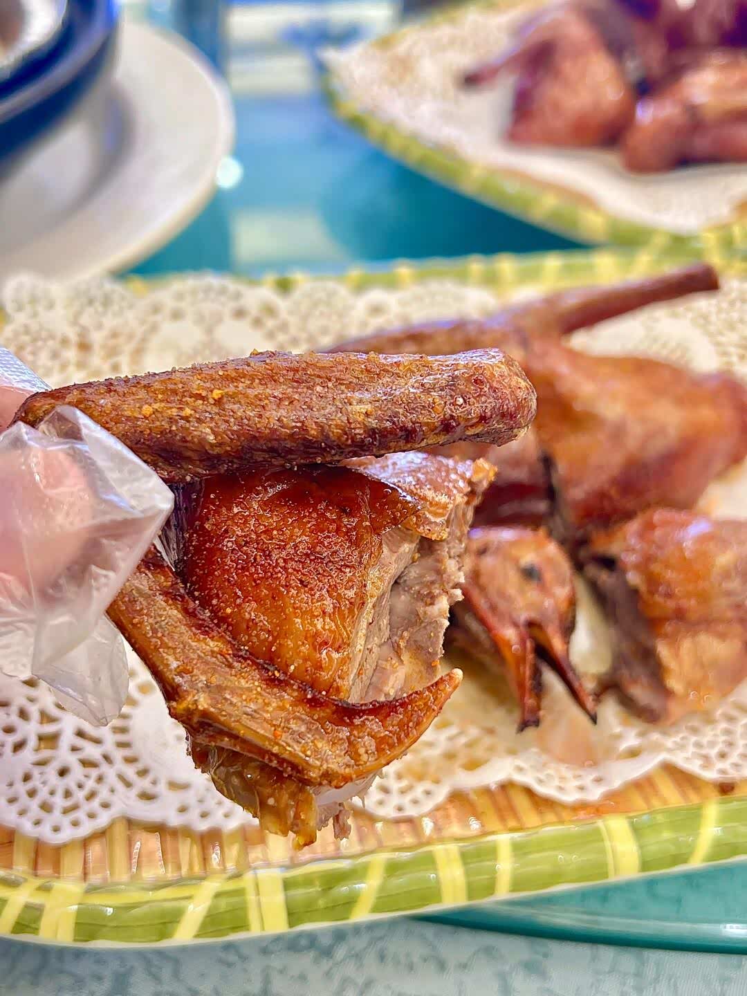 10:30抵达古村外围的农家菜馆,距西溪古村入口300米,L7的灵活操控在乡间小道轻松转弯。餐馆主打东莞本土风味,点了荔枝柴烧乳鸽、眉豆糕、酿三宝和塘虱鱼煲,份量足到差点吃不完。