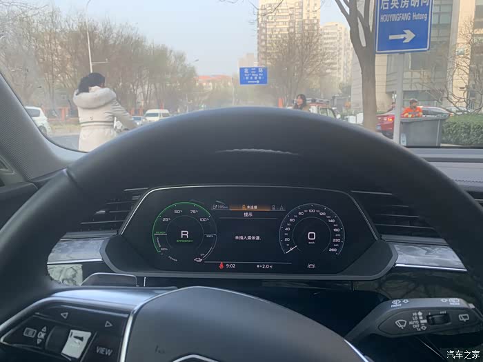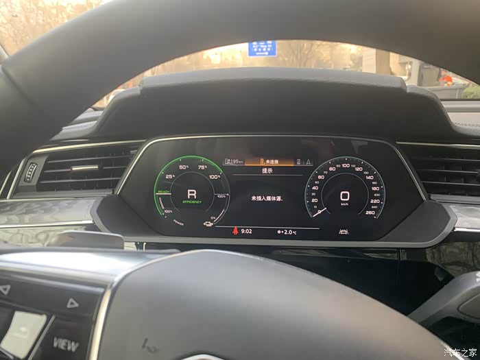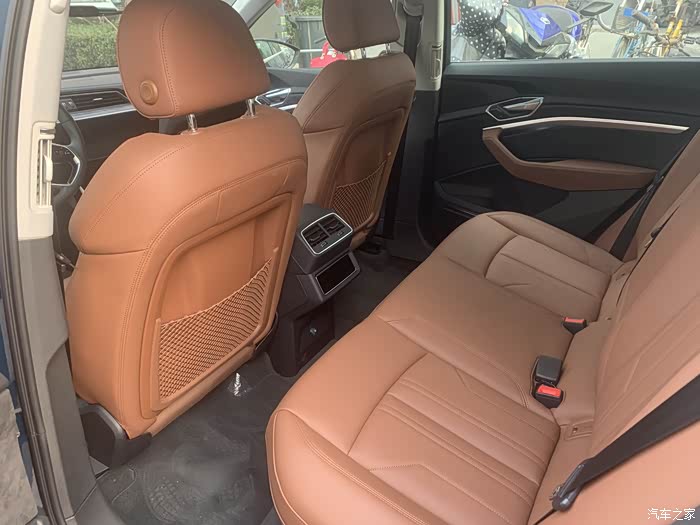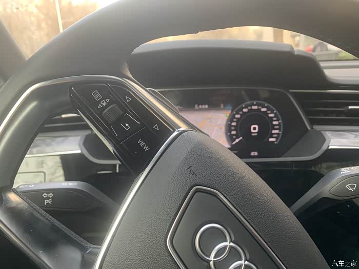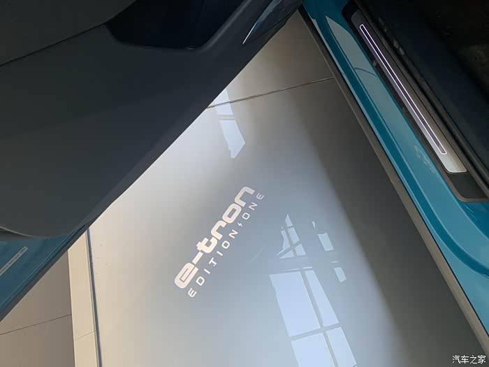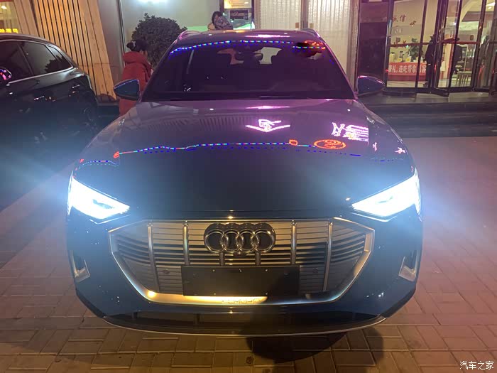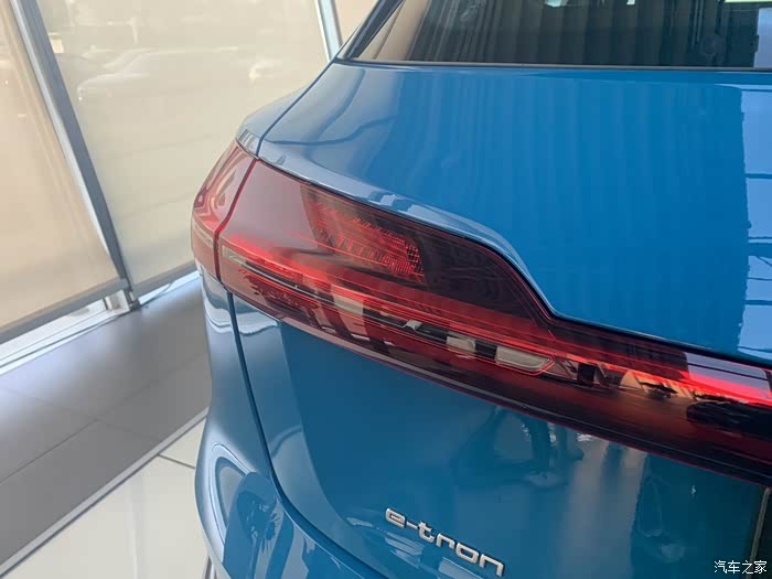 因为白天光线太强了,正午12点拍的,这是一款中配的e-tron,颜色星际蓝。