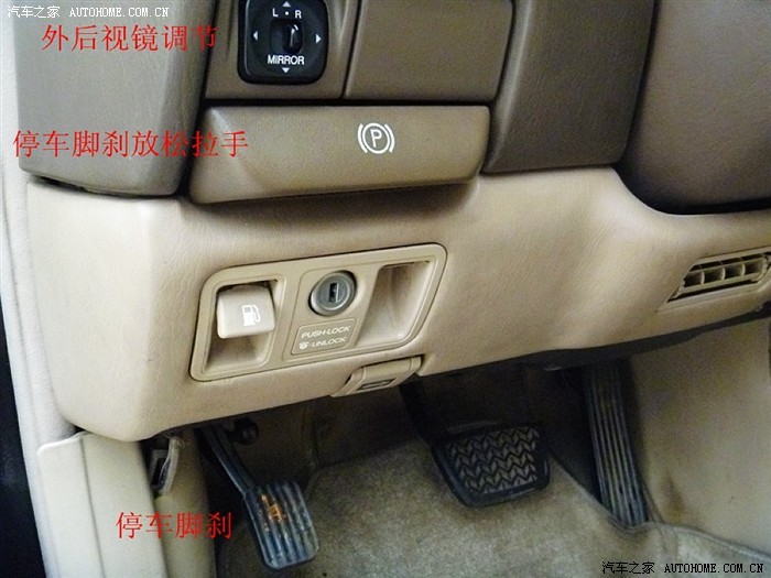 那是停车脚刹 相当于手刹 丰田很多车都这样的,,可以空出扶手那位置