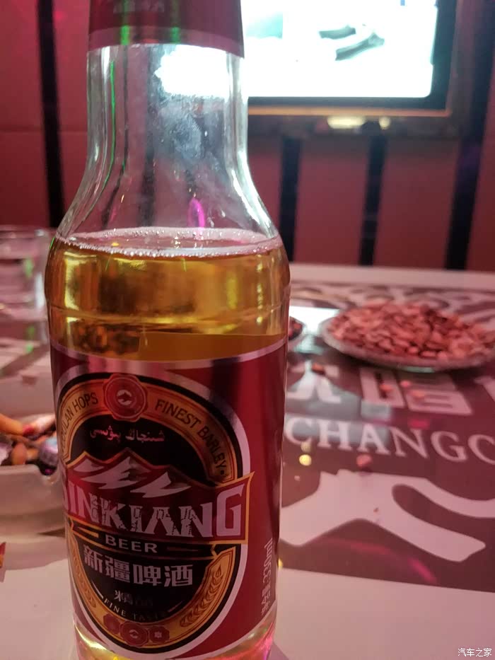 回到县城,小姨子招待我们k歌,新疆啤酒!!好喝。