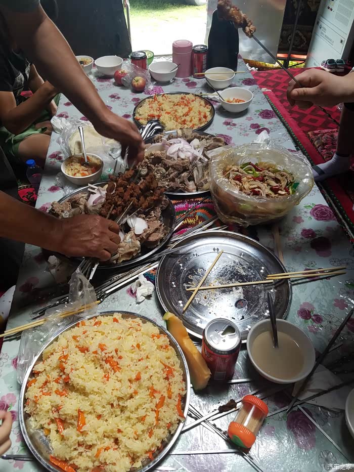 手抓饭,烤肉串,手抓羊肉,都快吃饱了还有这么多,看的我饿了。
