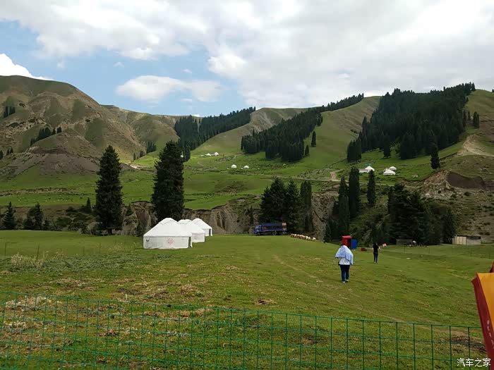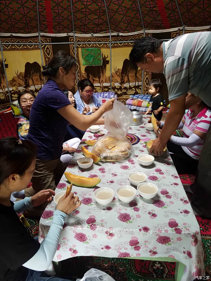 大蒙古包,里面能容纳10几个人,外面放着音乐看着美景,还有专门到这里玩的维族人跳着舞。