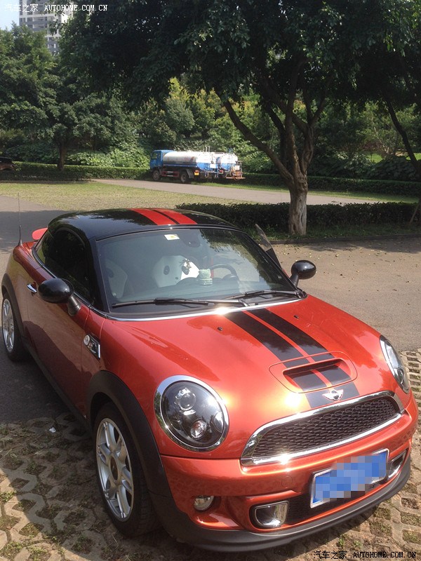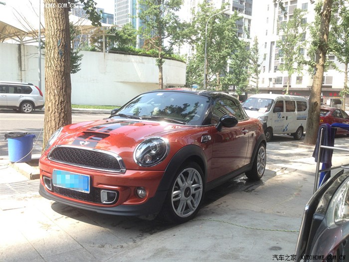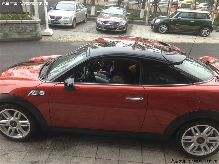 一天休息在家睡午觉LD把我叫起来说要去看车,她自己在网上看到MINI就留了电话,销售打电话给她说现在有优惠和活动,叫去店看看。就这样睡眼惺忪的被LD拎到店里去了,一去果然真在搞抽奖,但是人不多,当时真没有准备订车的。可是一进店就看见了这辆coupe。LD直接发言了:哇~~好乖!