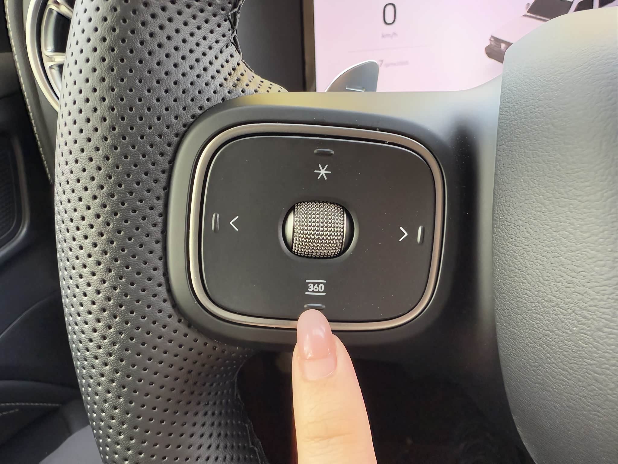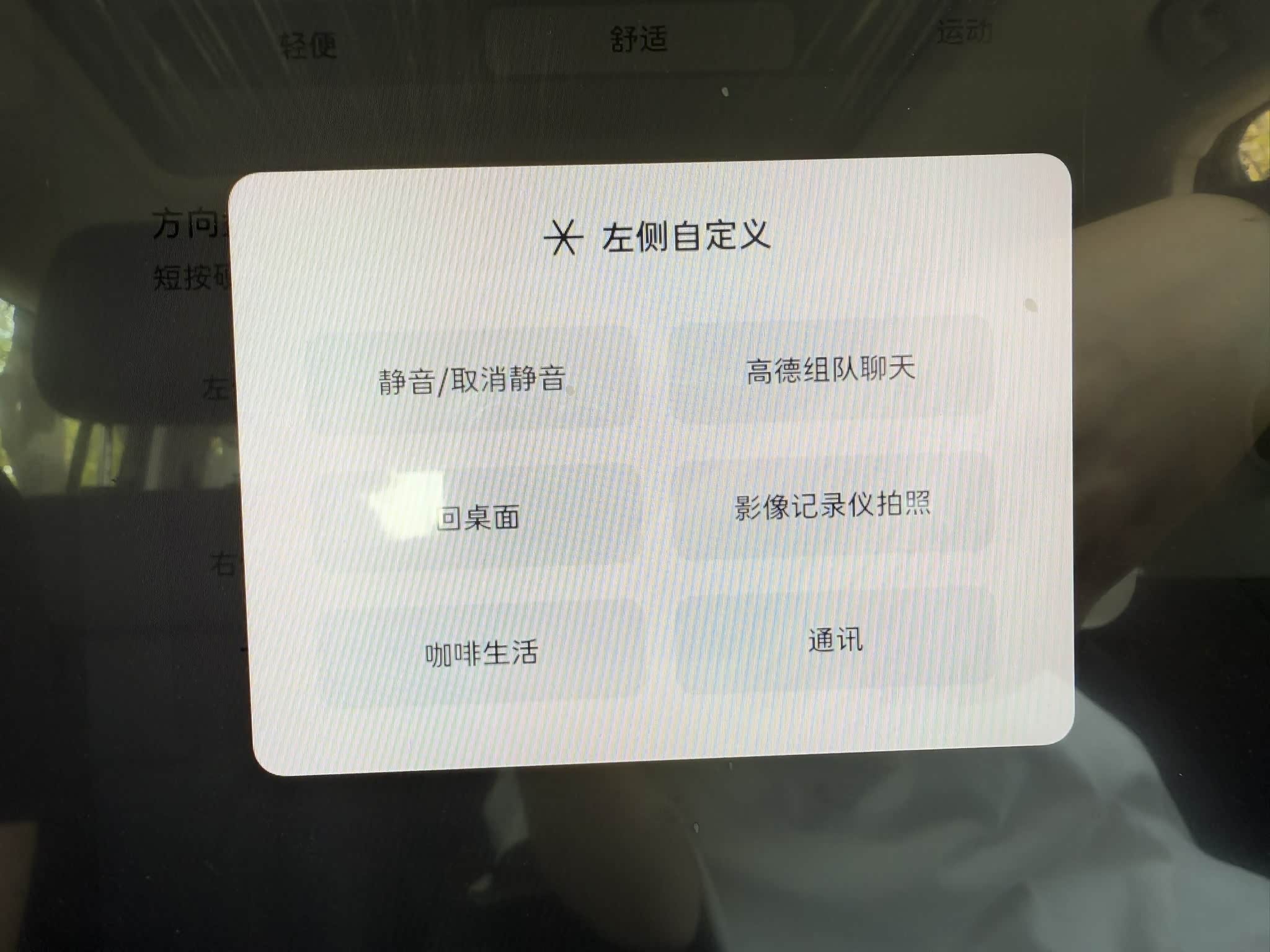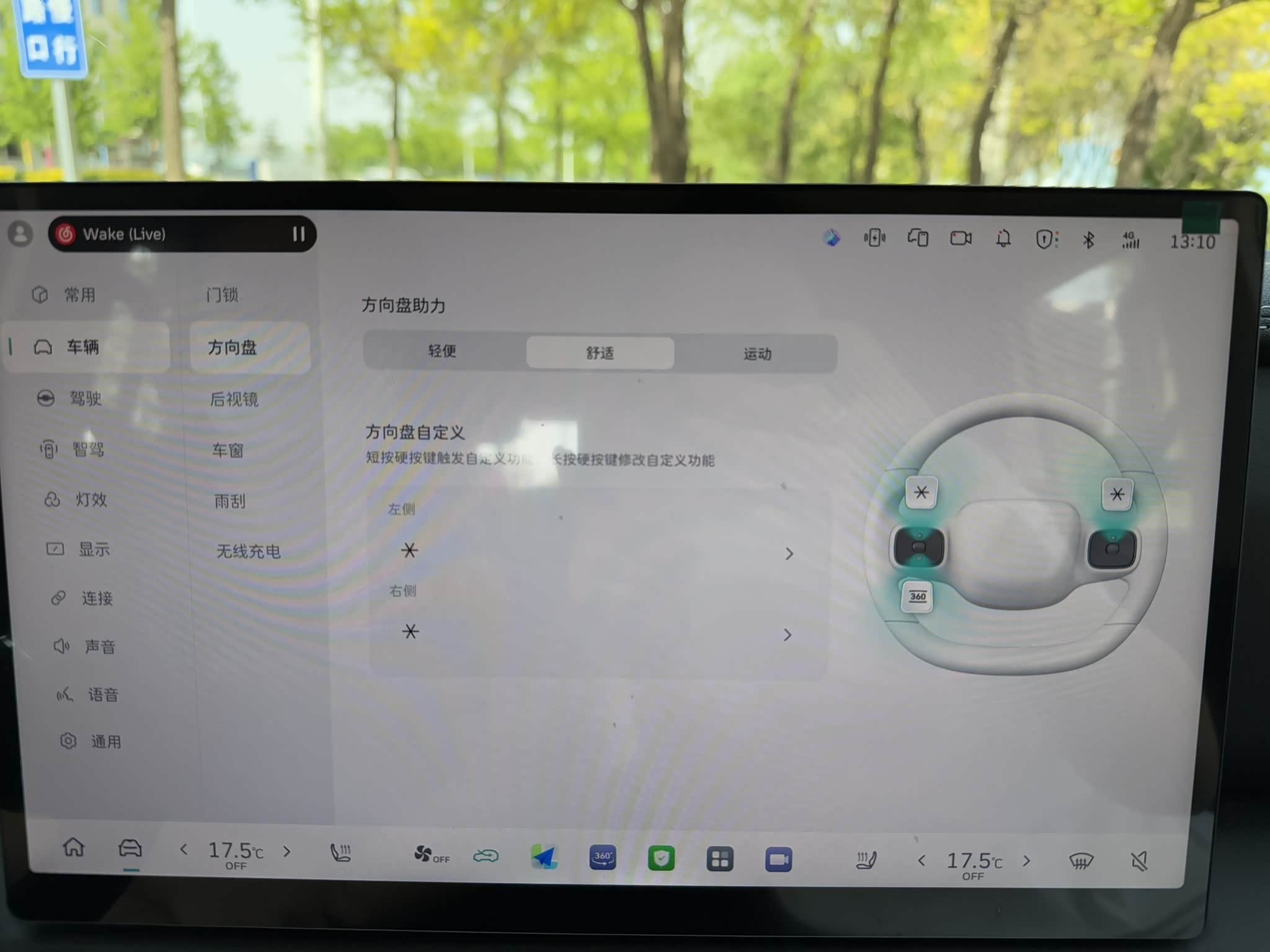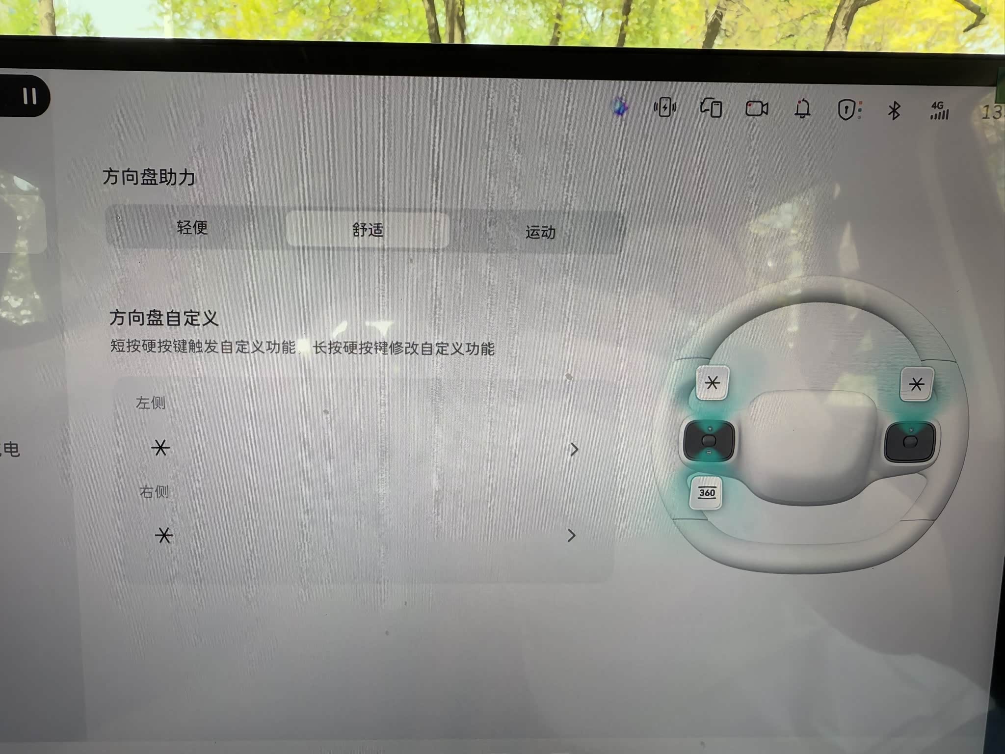 还有在车机的大屏上,左下角有一台小车的图标,点击进入,可以进到车辆设置界面,在左侧选择车辆,之后选择方向盘,就可以进入到方向盘的设置,可以在这个界面选择你想要给星号键设定的功能。