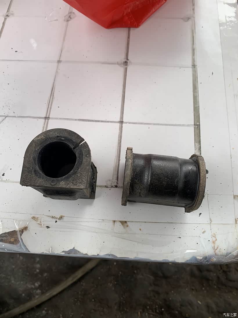 两边都拆下来,平衡杆就是个自由活动的杆了,擦干净后,套上新胶套,就可以复位安装了,我用石墨粉涂抹了新胶套内孔,可以快速的去除扭转应力,不可以用黄油机油,会腐蚀胶套。