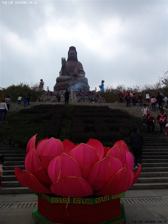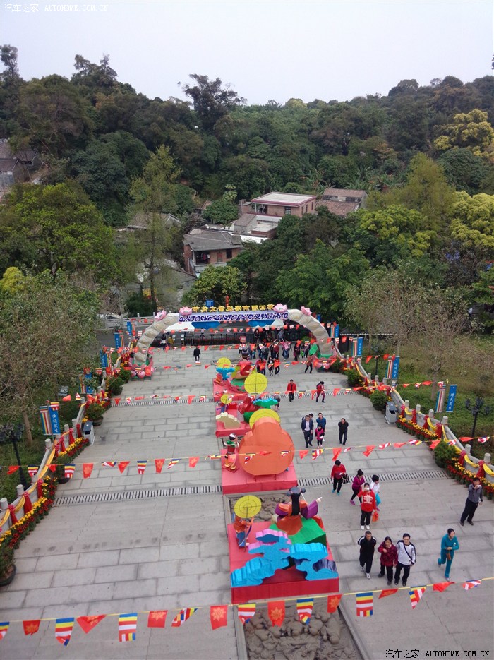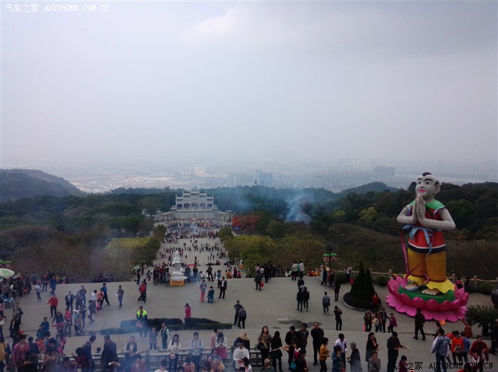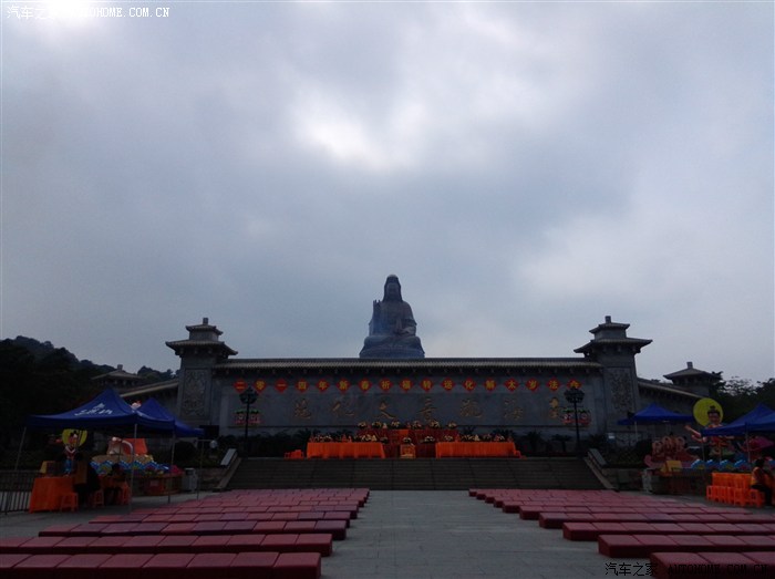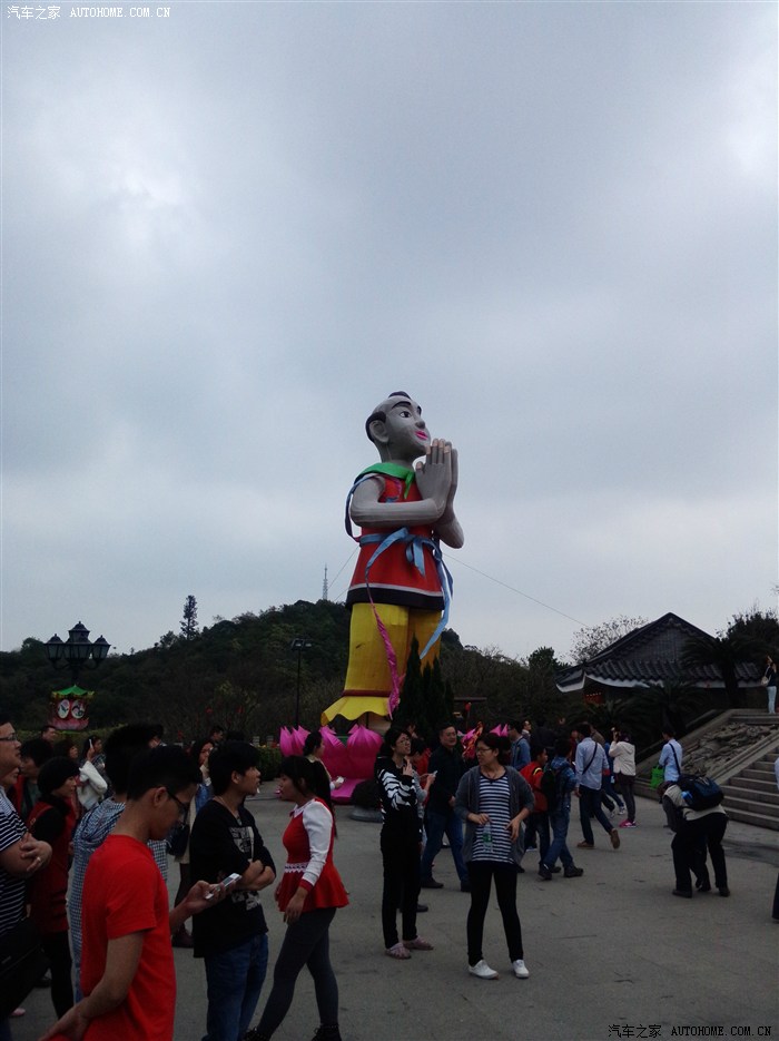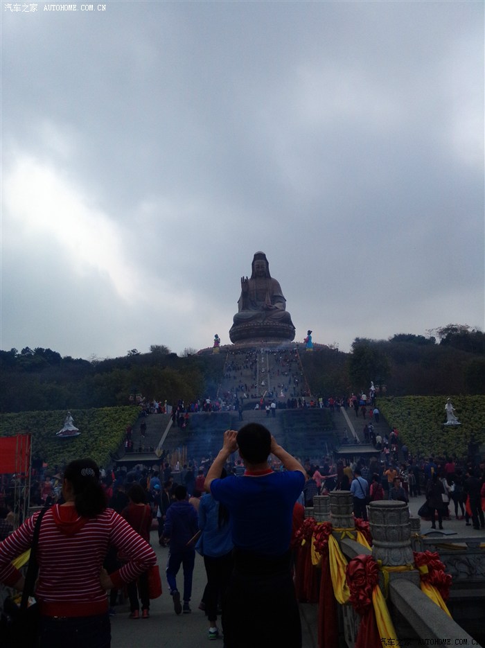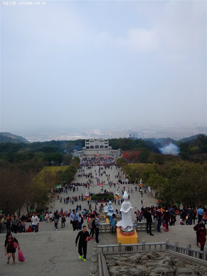 然后到点了,直接开着车往山上冲!一路上山路十八弯,快到顶的时候还能看到西樵的夜景,可惜在开车,路上也没有地方停车,不敢贸然停下来拍照!一路冲到了宝峰寺的停车场!往宝峰寺和南海观音像走去!