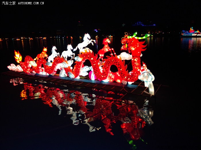 一路走进去,路的两边,湖面上都是形式不一的花灯!