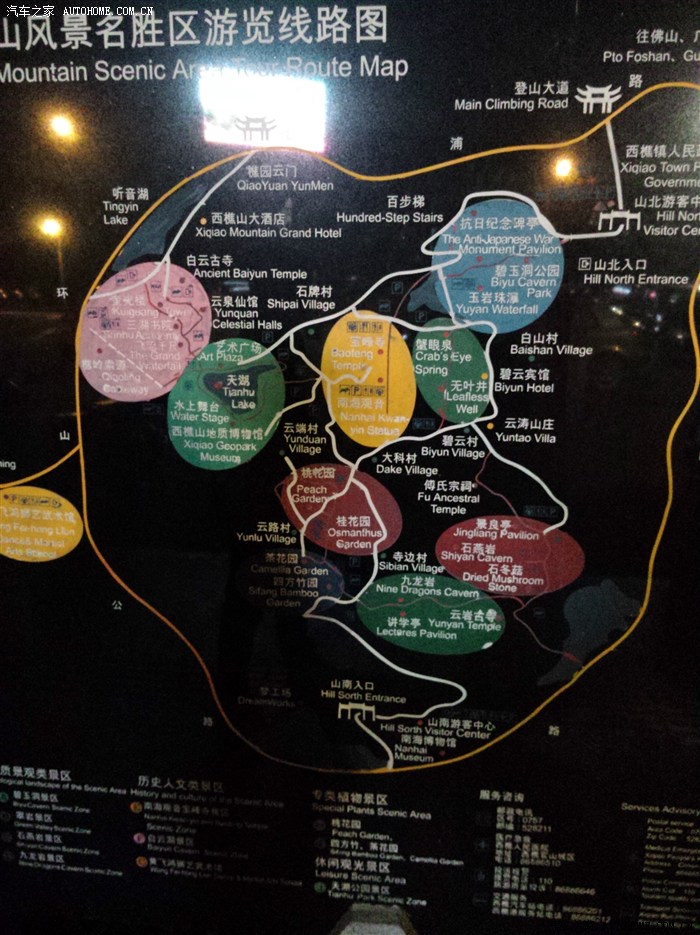 之前只是在北门登山开车上来的,现在在南门出的山,感觉南门的山路还比较险,竟然有传说中发夹弯,晚上开山路也算过把瘾了吧!