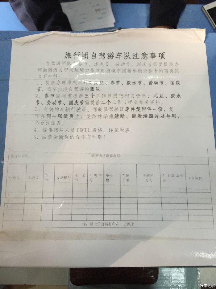 计划和准备:护照和签证,建议在中国境内将老挝和泰国的签证办理好,我都是在北京办理的,老挝签证收费200元需要等4个工作日可以到领事馆直接办理,可以在老挝停留30天,泰国签证收费279元由途牛网代办等5个工作日,可以在泰国停留60天。切记绝对不可以拿着空白护照想着出境后到老挝和泰国办理落地签,如果护照上没有它国签证,海关是不会放行的!如果你在境内只办理了老挝签证,是可以出境并到泰国办理落地签,如果你在境内只办理了泰国签证而没有老挝签证,那样海关也不会放行的!老挝和泰国的落地签都是15天。同行驾驶的车辆可停留天数根据驾驶者的签证有效天数一致。