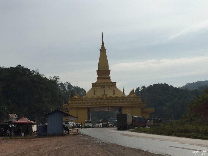 出国门后,车友们记得与国门合影留念啊,之后往前开就会看到左手边的中老国界碑。当开到看到金色的建筑物时,那就是老挝的第一关了,在这里办理人员入境手续,每人2万基普,车2万基普,之后同中国一样,司机需要将车开入境,而其他随行人员需要从国门入境。之后需要给车消毒,工作人员很随意的往轮毂上喷了几下水收费2万基普,会给一张收据,这个收据一定要留好以便路上老挝警察临检。消毒后,前方右手边就是需要给车买保险的地方,最短天数为7天,最长为一个月,我选择了7天的收费10万基普。这些都完成后,往前开将来到入境的最后一关,给车辆办理入境手续,稍作排队即可,把行车证给工作人员,这里收费5万基普,根据车型的不同将会有不同的收费。最后我们开车到入境口,将手续给工作人员过目,简单的检查了一下后备箱,就正式的踏上老挝路段之旅了。老挝境内我选择的是直接到会晒的路段,全程山路,路面平整,缺点是来去双车道,这里需要在货车后面算好时间和对面没车的时候进行超车,由于是山路,240公里的路,我开了4个小时,也算是很快了。在老挝境内,没有遇到路上有老挝警察临检,或许刚好是周三不是周末节假日的关系吧。