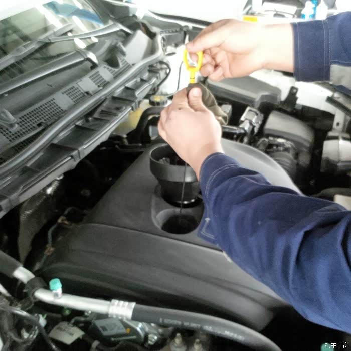 6.发动汽车,新机油运转后再次检查机油高度,保证机油加足。灯具检查。