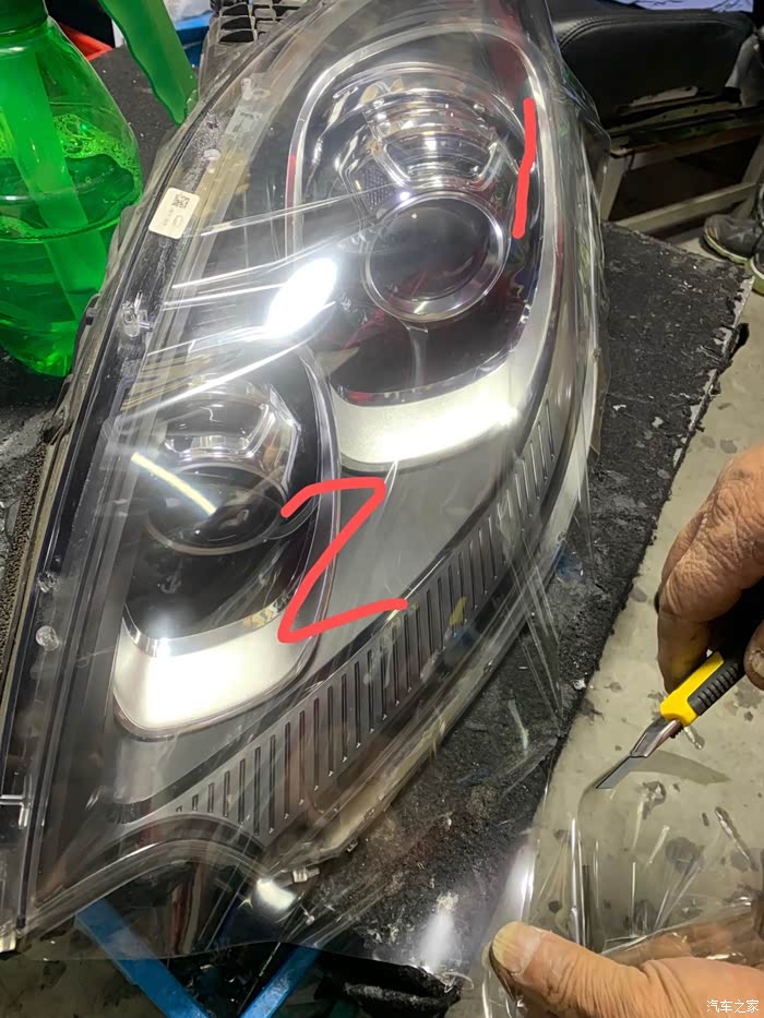 由于经常开高速,夜间总感觉近光不够亮,远光无力,市区,郊区行车会车,经常被远光狗欺负,心想人家十来万的车把我射的服服帖帖,很是不爽,于是开始研究改灯,开始本来是打算直接搞一套原厂随动LDE大灯总成,上海这边报价3万,原厂LED大灯帅气,可是纠结的点来了,没有实际开过带随动大灯的车,担心亮度是否可以达到心中要求,于是辗转体验了一下车友的LED随动大灯,亮度果然是比原厂疝气灯亮的多,近光清晰,可远光还是感觉无力(个人感觉,我可能有强迫症)心里开始打算盘,我其实不追求帅气外观,只追求实用,足够亮就行,花3万搞一个高科技,有炫酷外观,功能强大,却不能满足自己的灯光需求,一方面也是为了追求性价比,开始研究IDY改灯,网上macan的改灯案例几乎没有,联系了很多改灯店,最终敲定一家,直接开车过去改!