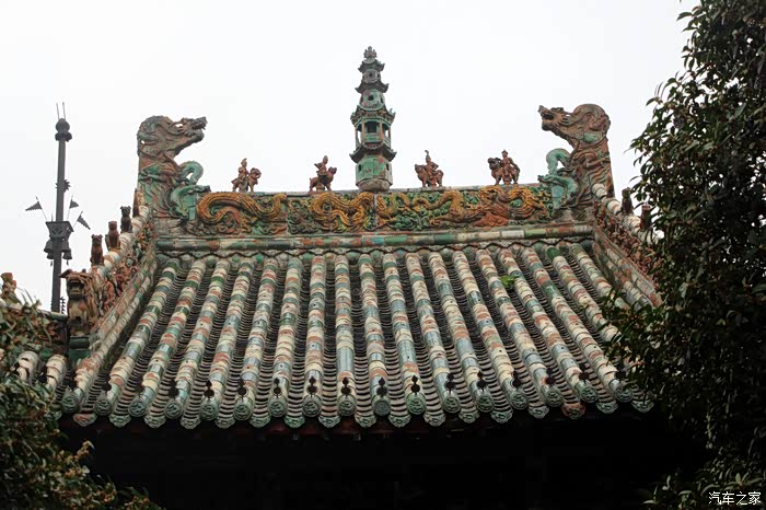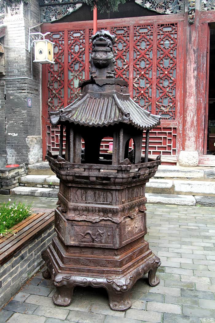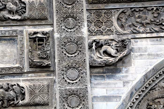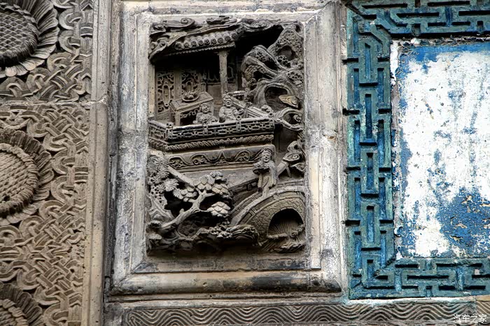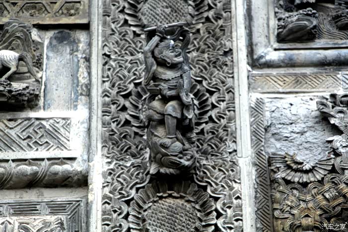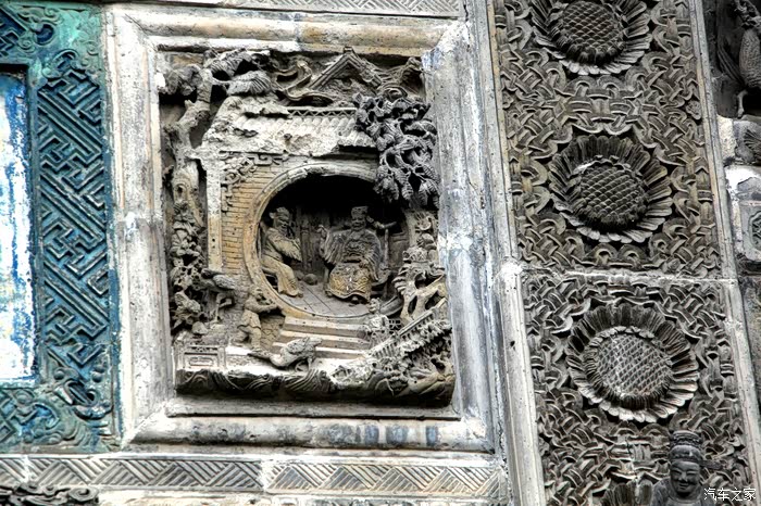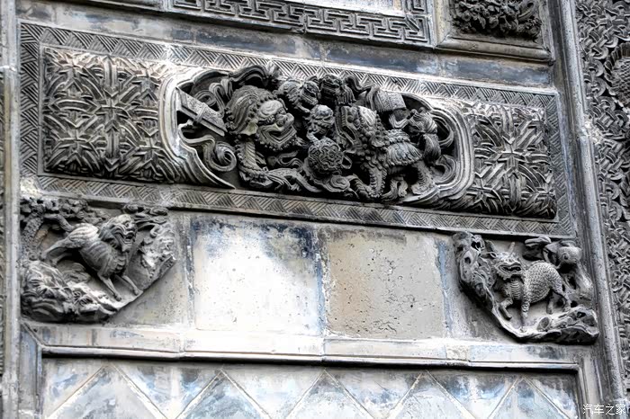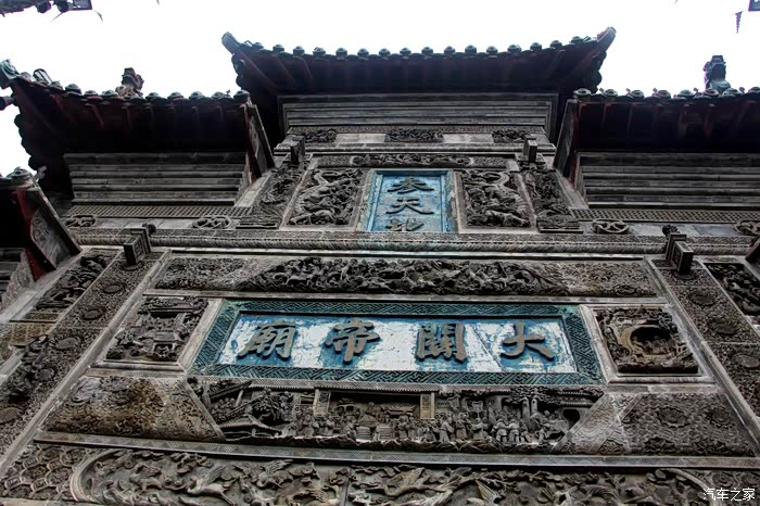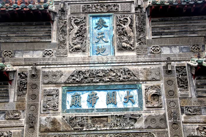 大关帝庙。上下左右水磨青砖上镂空雕刻。图案精美、栩栩如生。