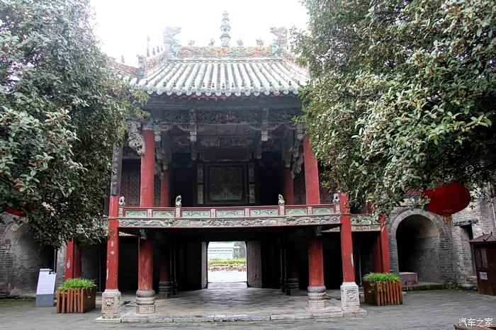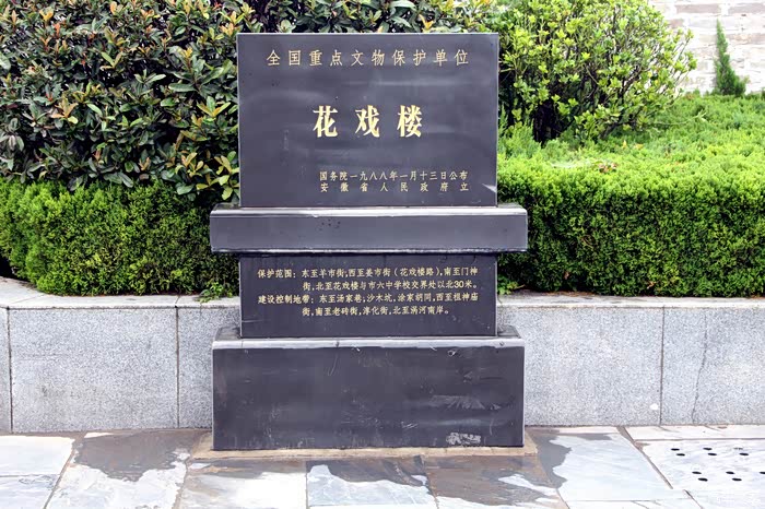 花戏楼位于亳州老街最北端,紧邻涡河南端。花戏楼以雕刻彩绘绚丽夺目而得名。花戏楼很有历史沧桑感,我以前去过河南南阳赊店镇的戏楼,那里的戏楼与这里的花戏楼比起来,依有不小的差距。这里的花戏楼雕刻建筑更是了得,无论是石雕、木雕真是精美绝伦、巧夺天工。花戏楼原名:大关帝庙、又称山陕会馆。是一座建于清康熙年间专供演戏的建筑。戏楼座南朝北,舞台前伸,形如凸四方翼角,加之屋面琉璃辅饰,金碧辉煌。舞台上方悬有藻井四围悬枋和徒垂莲。柱间有大枋,大枋与悬枋之间,悬有棚券,柱头悬狮垂鱼。枋之面外皆镶大木彩绘透雕,共有三国戏十八出。花戏楼的庙门外主有石狮一对,座上铸铭曰:“皇大清道光元年(1821年)岁次辛已秋吉日铸造旗杆一对,重达二万四千斤,陕西从药材邦弟子敬献铁杆一对,永保四方平安吉庆有余。”有整砖雕刻出戏文、故事、图案、花纹七十余种,镂空雕刻精绝天下。敬请看图: