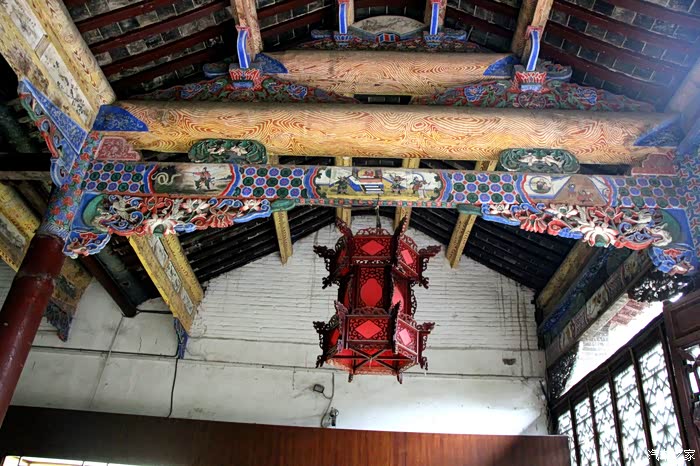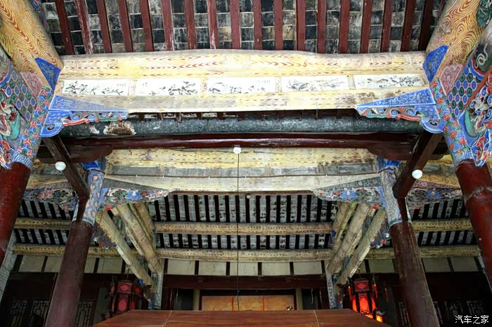 身处其中,但见一座富丽堂皇的戏楼,镂刻着繁杂的花卉绘画,奇异瑞兽,满布着荒漫久远的传奇故事,不知不觉中,三百多年的悠长岁月扑面而来。