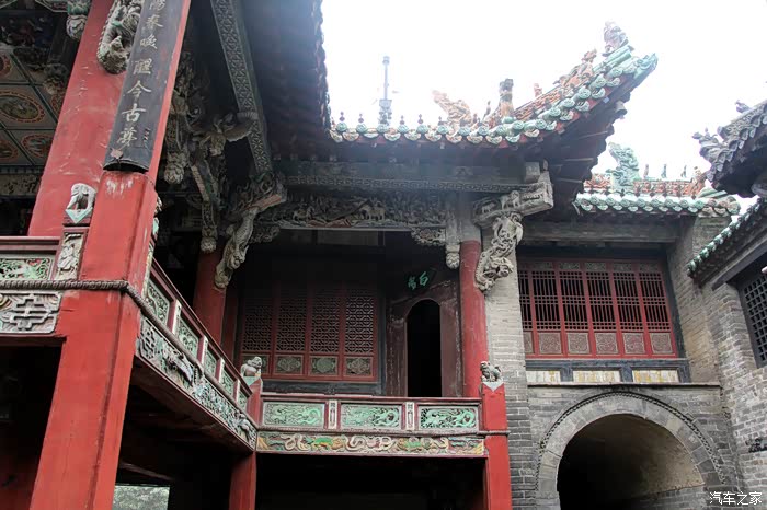 进入到了花戏楼。宏伟壮观,雕刻精湛瑰丽,装饰富丽华美,素以其巧夺天工的艺术雕刻著称于世。它集民间建筑艺术之大成,在建筑构件上巧妙的运用木雕、琉璃、彩绘等工艺,融合了园雕、高浮雕、镂雕、阴刻等不同技法,使每一个作品造型完美,形象传神,木雕、石雕、砖雕数量之多,内容之丰富,工艺之精湛,居中原之冠,不施为中原瑰宝。