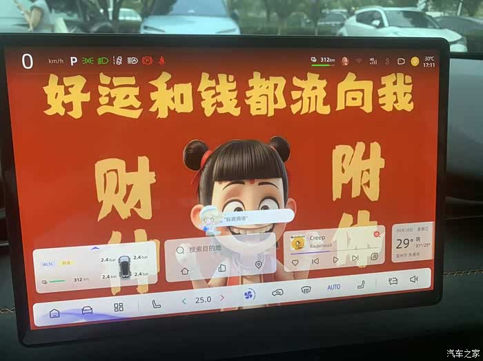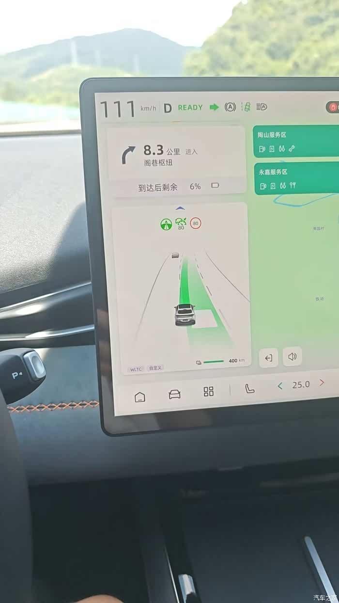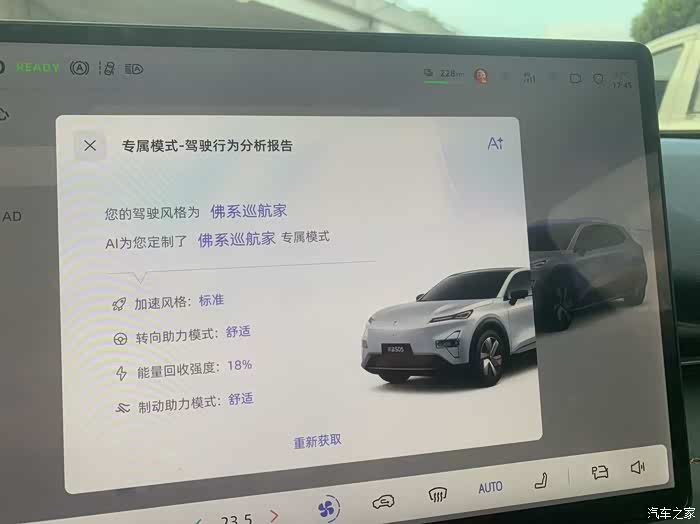2、屏幕右上角新增了续航里程显示,查看电量更为直观。