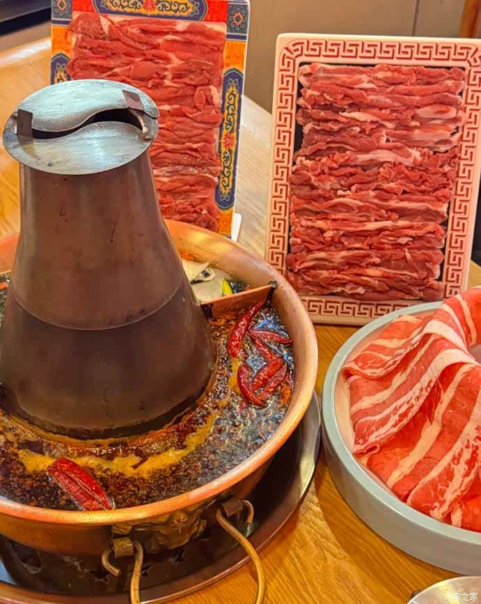下雪天自然是羊肉涮起来,我们选的是鸳鸯锅,一边辣一边是清汤,先上了三大盘肉,都是鲜切的,嘎嘎好吃。