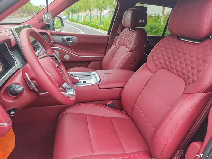 坐进驾驶座的瞬间被内饰打动,酒红色 Nappa 真皮座椅的触感比朋友的德系豪车细腻不少,菱形缝线的针脚均匀工整,摸上去能感受到皮质的细腻纹理。调整座椅时发现功能特别丰富,不仅能调高低前后,腰部支撑和腿托都能多档调节,甚至连座椅角度都能微调,找到最舒服的坐姿后,感觉像陷在自家的真皮沙发里,包裹性却更好,长途驾驶时腰部能得到精准支撑,这点比我试驾的很多合资车都要强。