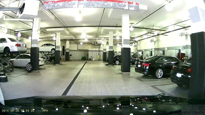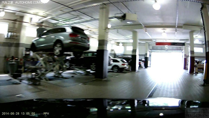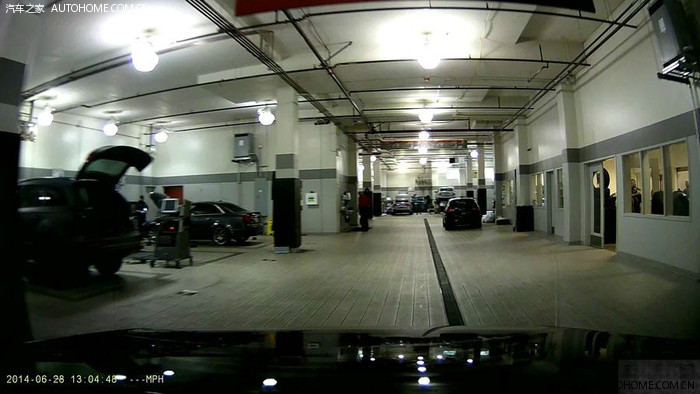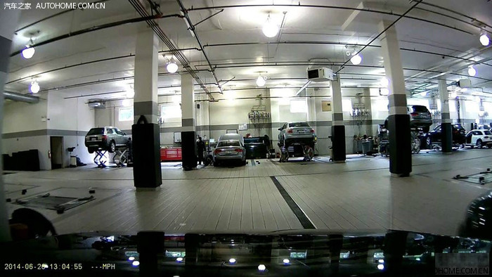 行车记录仪拍下了店里维修部作业间的样子。挺干净整洁的。