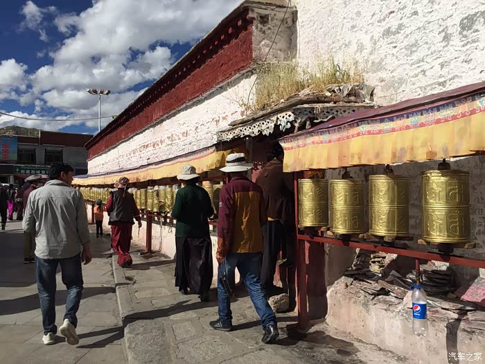 从一千三百年前的,九百九十九间房舍,到现在的三千间,布宫,承载着太多的历史故事,仿佛那一扇扇紧闭的窗棂,被岁月封尘。有信徒在清洁转经筒,还有人在上面刷金粉,饹驿不绝的信徒,也有游客涉足其中,不断地转动着,口中念念有词。多数藏人,将一根两尺来长的棍子插在腰间,不停的转动着棍子顶瑞的手动转经筒,另一只手捻着佛珠,口中念着六字真言,匆匆走过。