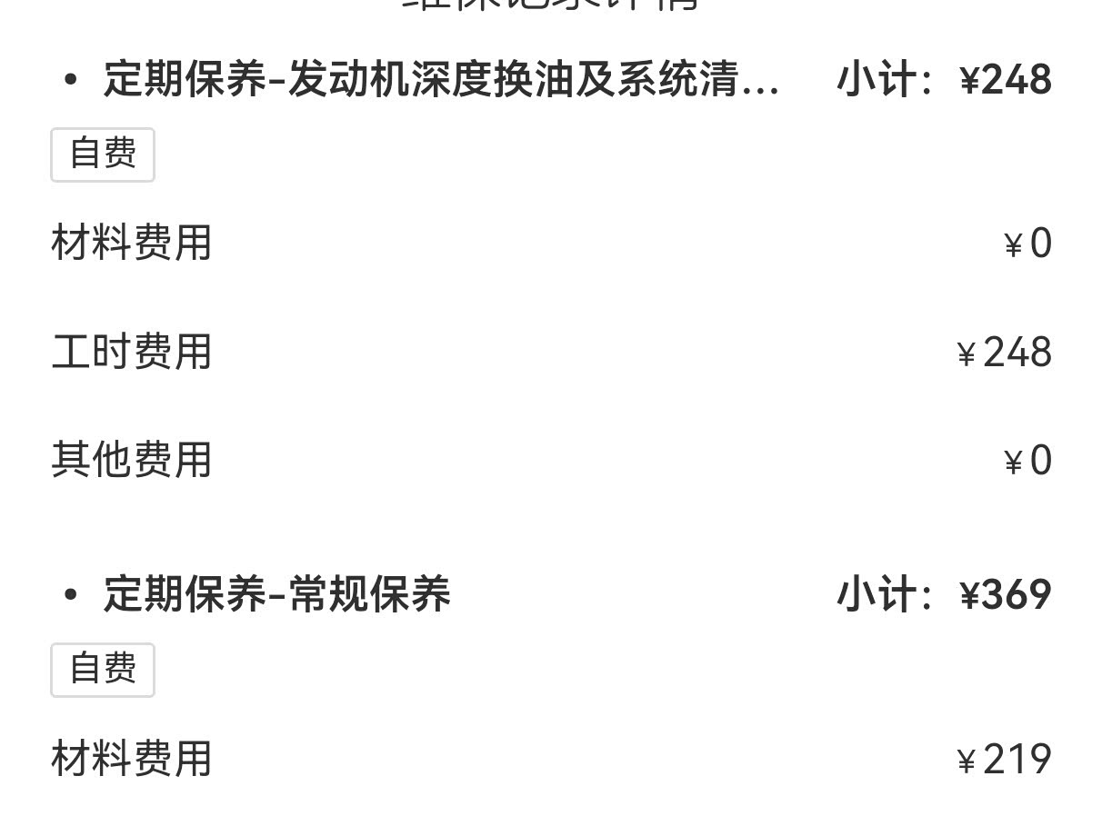 - 常规油车保养项目:机油机滤(厂家赠送的保养券抵扣,价值369元)