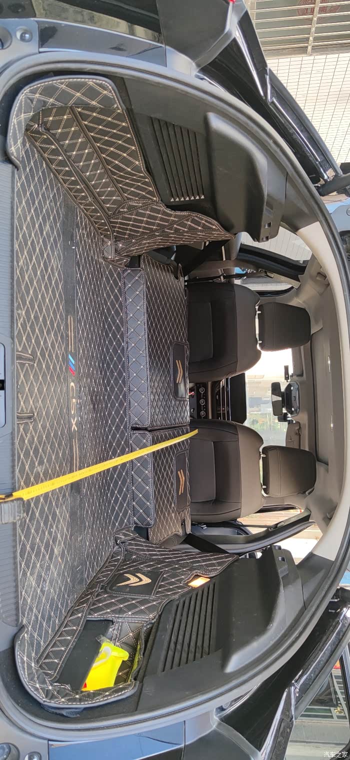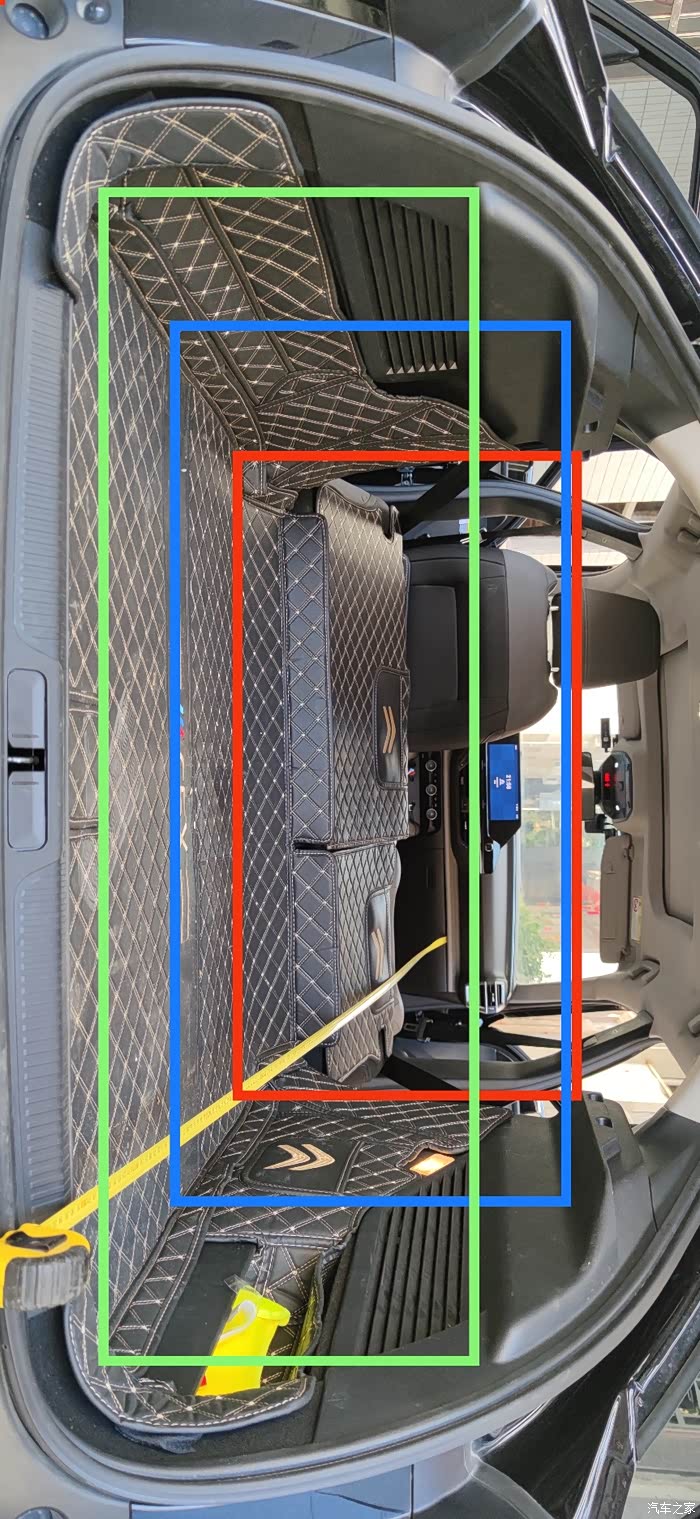 驾驶位调好距离,以我的坐姿,最长有180CM。加上87CM的最窄宽度,这个尺寸保守估计可以放得下一个450-500升的双开门冰箱。尺寸大概为180*87*70CM。
