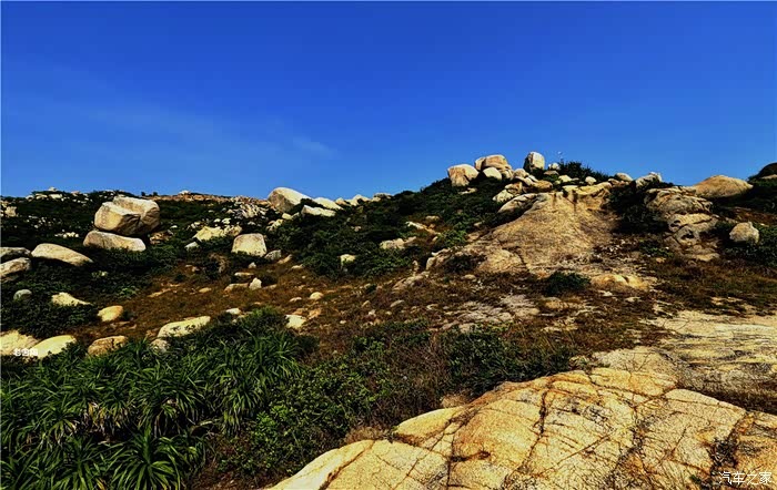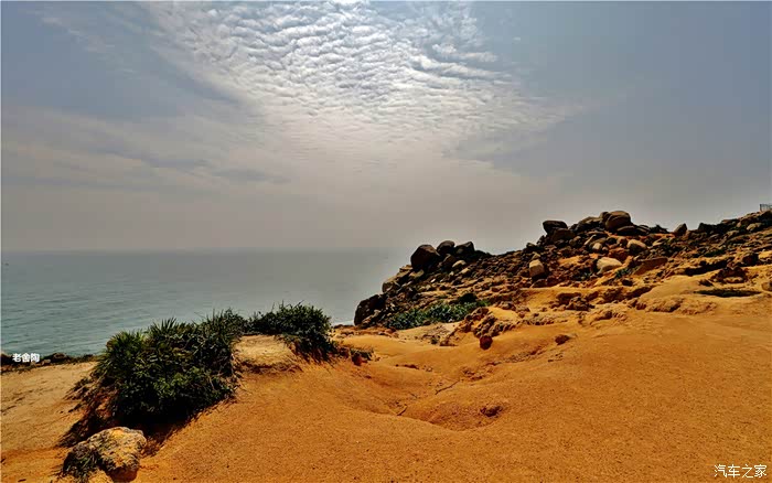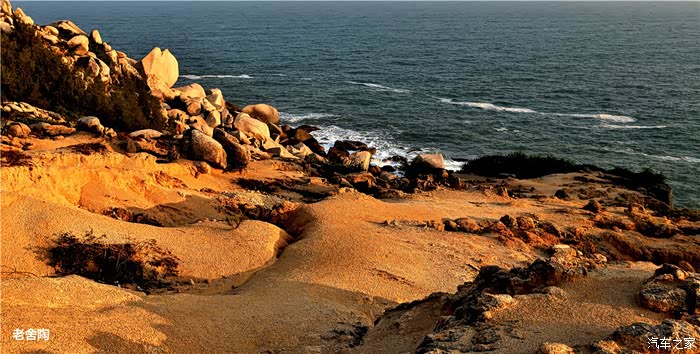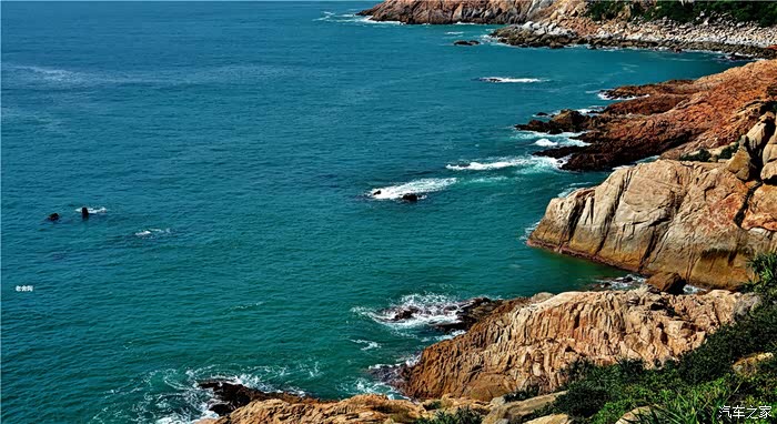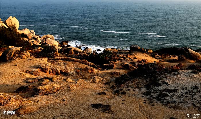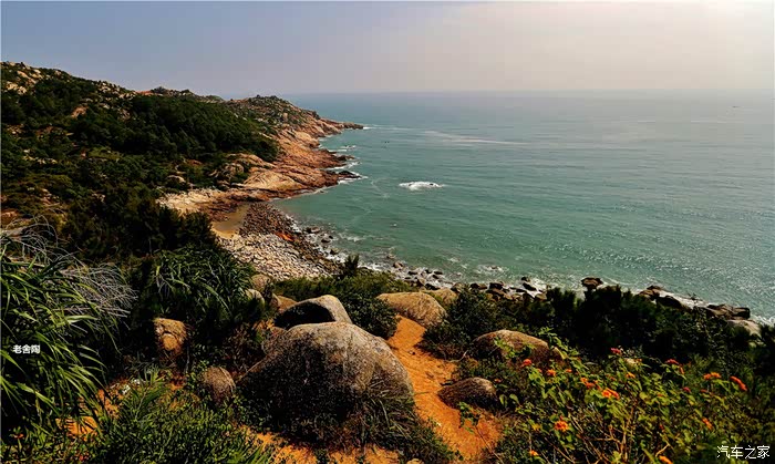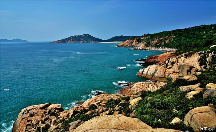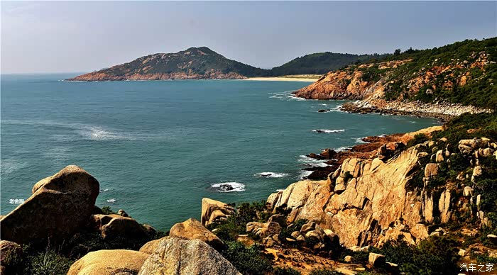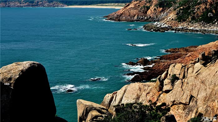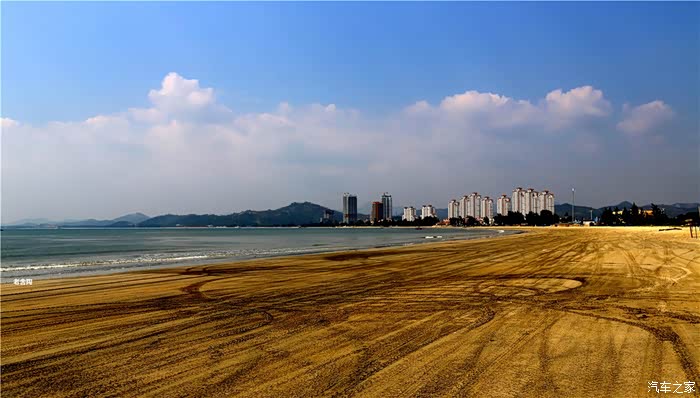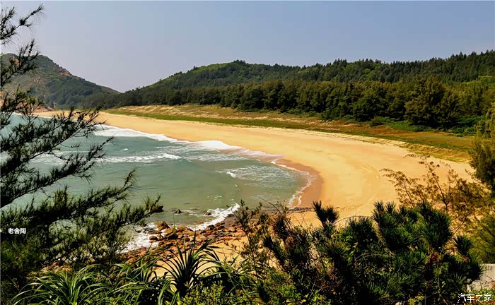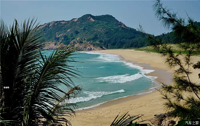 白的弧形沙滩,沙质幼细,晶莹洁净。摩托车、小汽车在沙滩上行驶犹如海上行车,乐趣穷。