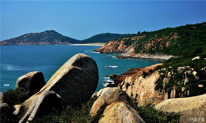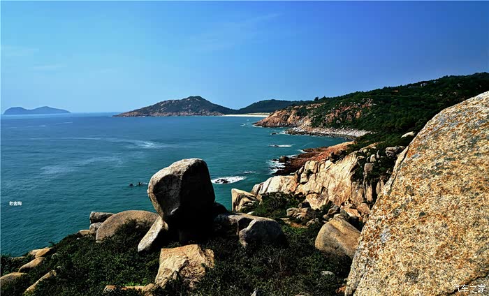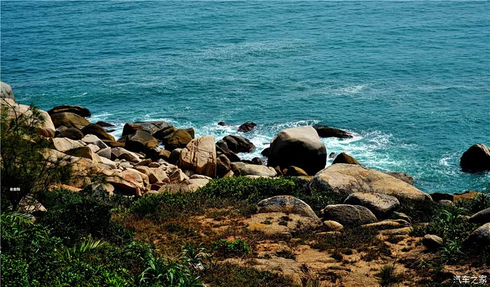 的沙滩,黛绿的林带,碧蓝的大海,多姿的礁石,迷人的小岛,穿梭的渔舟,构成了动静交融