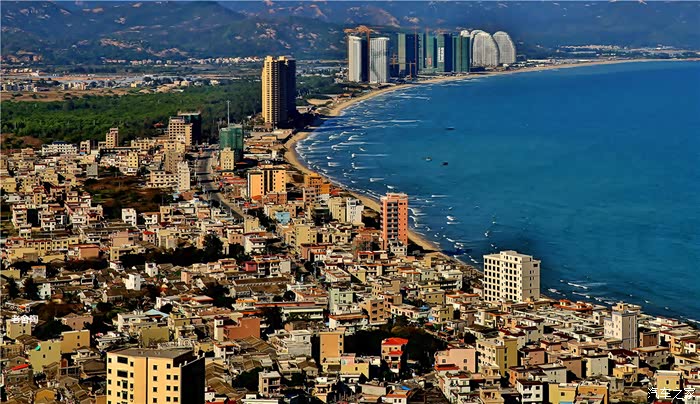 涛汹涌,气势磅薄。这里三面环海,风景如画。惠东的双月湾,由两片半月形湾畔形成,而这