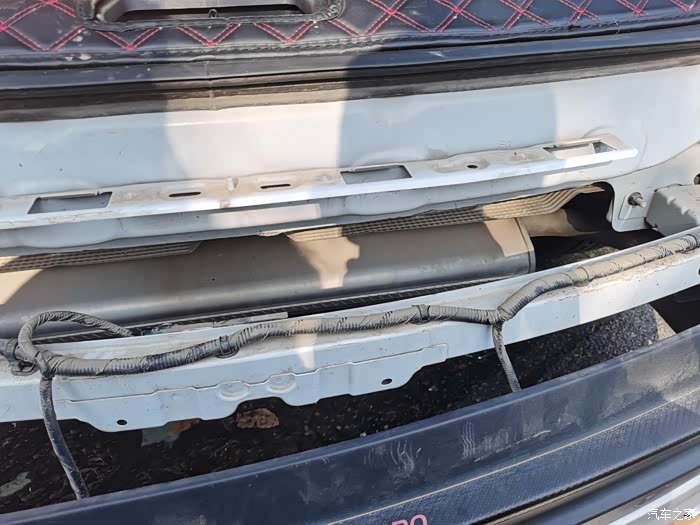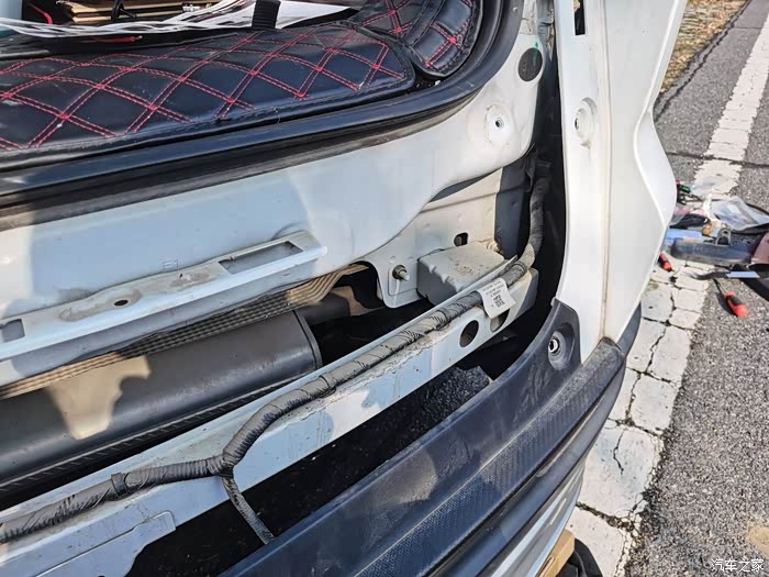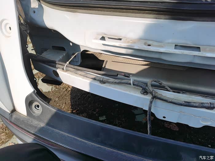 再接着是拆后杠装雷达模块,并将线束从后杠放到副驾中控下: