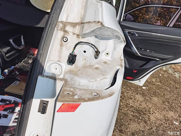 这里拆门板是一定要注意力度,先找到对应的卡扣,用拆车专用的钢撬片把卡扣撬掉,另外建议最好是天气温度合适的时候搞,天冷温度低,塑料件会变得易碎!