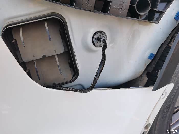 从后叶子板内这个预留的孔位中出现到后备箱,注意一定要打胶做好防水,一应耗材都随盲区监测系统附赠