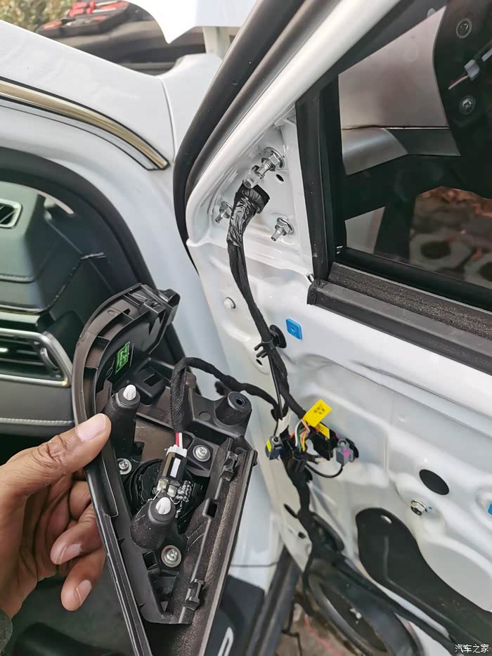 门板还原处理完毕,下一步是根据教程从主驾A柱取CAN信号和从主驾方向盘轴承附近的连接器取电,单人施工,无法拍照,根据说明书操作就可以了
