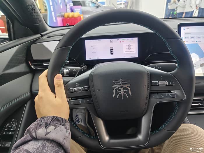 内饰方面座椅个人感觉偏软,方向盘手感不错,车内空间很大,比秦L dmi大一些。