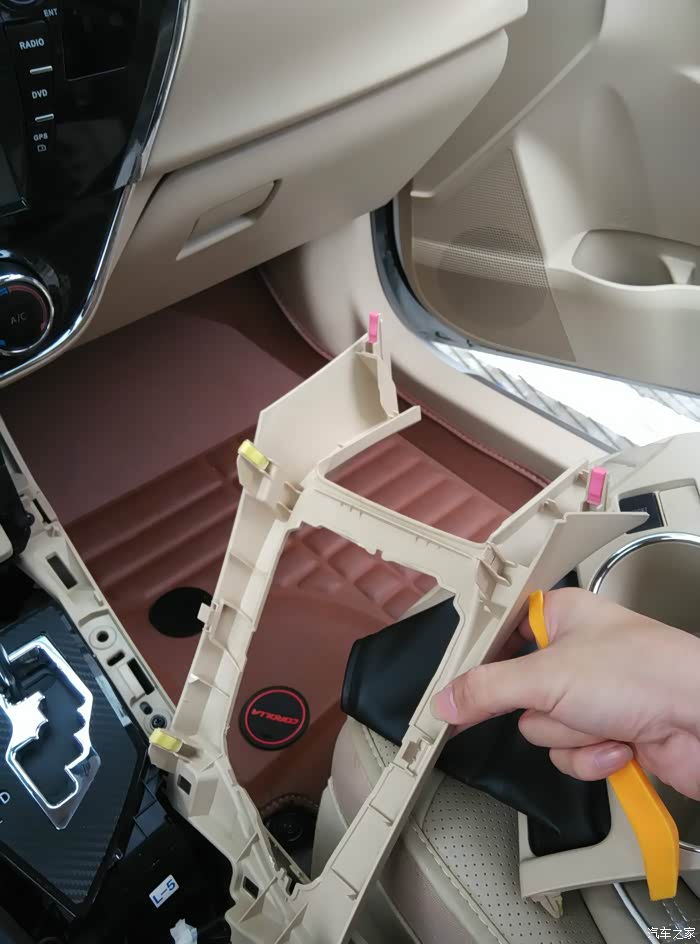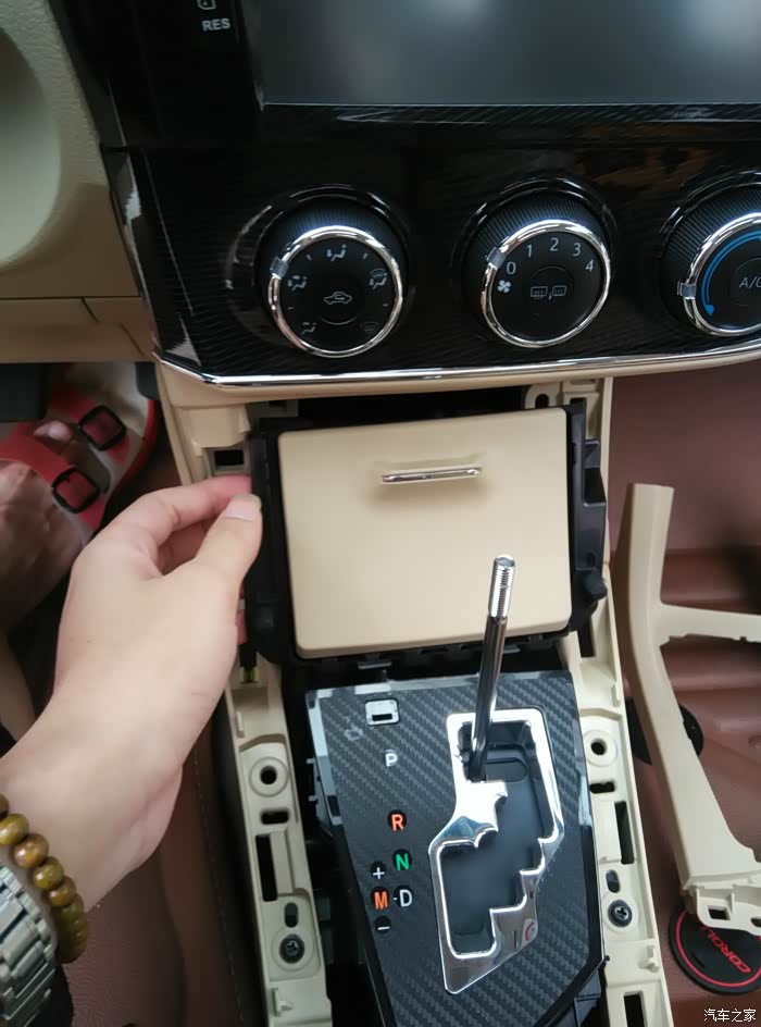 有人想装点烟头那个位置的也要这么拆 因为你要拆到点烟头储物盒 也必须先拆了后面的,因为后面一个盖一个的全部盖住了。步骤一样 只是usb座位置不同。