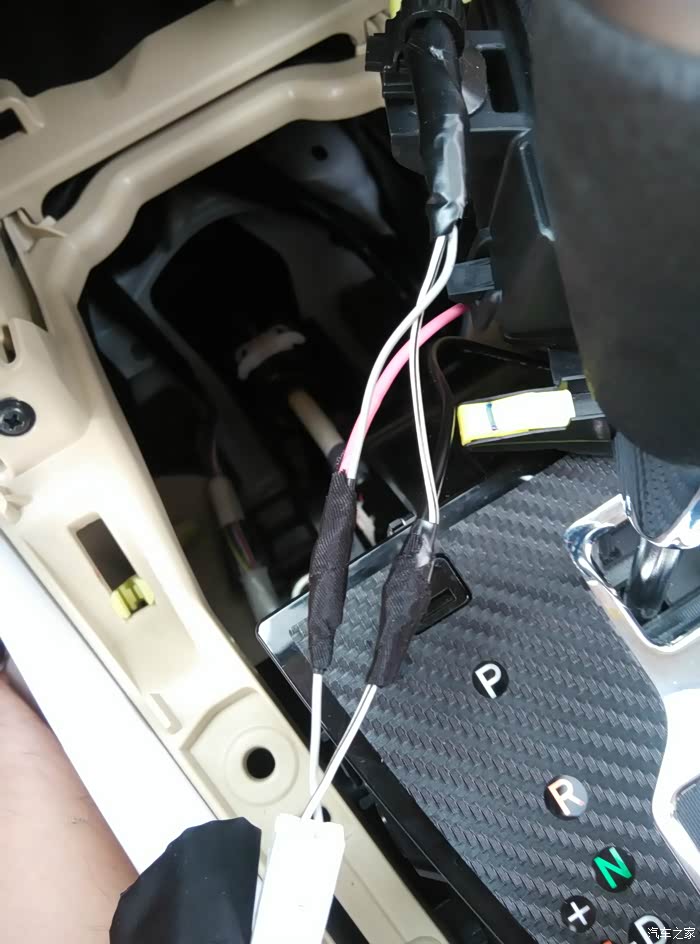 我的线是在变速箱挂挡面板右下方过的 两边下面是空的 可以随意穿插, 中间档杆是有东西包住的不怕线会掉进去。