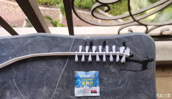 用清洗洗衣机的刷子和泡腾片,加热水。 多泡一会反复清洗。