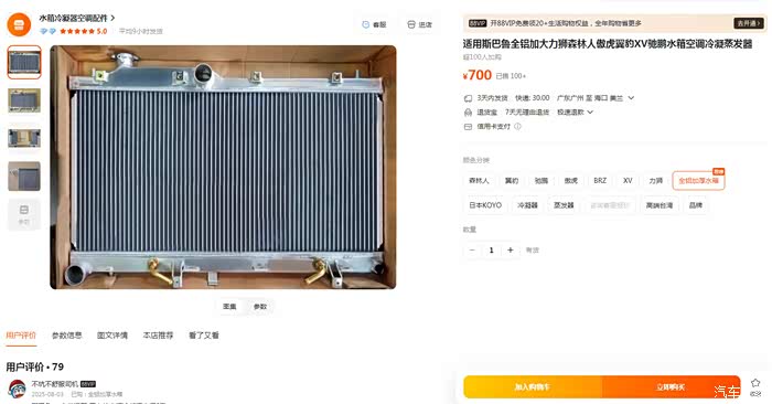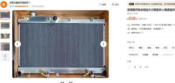 原车散热片厚度16MM 换成25MM。加厚不多。安装能容易点。