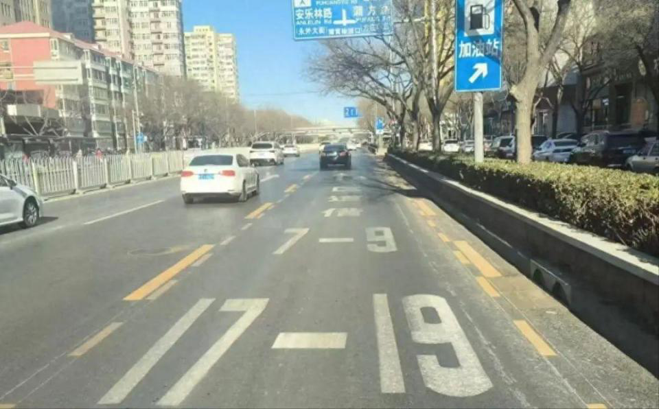 时间提示标线:部分公交车道会在地面标有限行时段,如“7-9”“17-19”等,表示在该时段内社会车辆不得进入公交车道,在限定时段以外的其他时段可以借道通行。如果没有加标限定时段,则表示全天24小时禁止社会车辆进入。