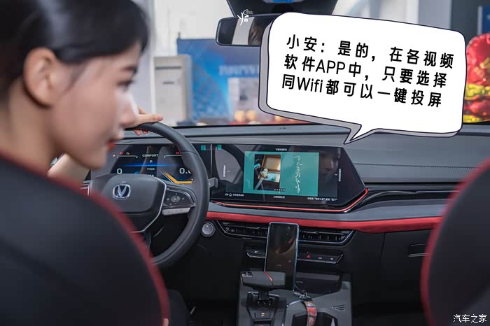 小琴同学了解完车子后,觉得这台长安X5 PLUS真不错,特别是它的无麦车载KTV功能,深受小琴同学深爱。