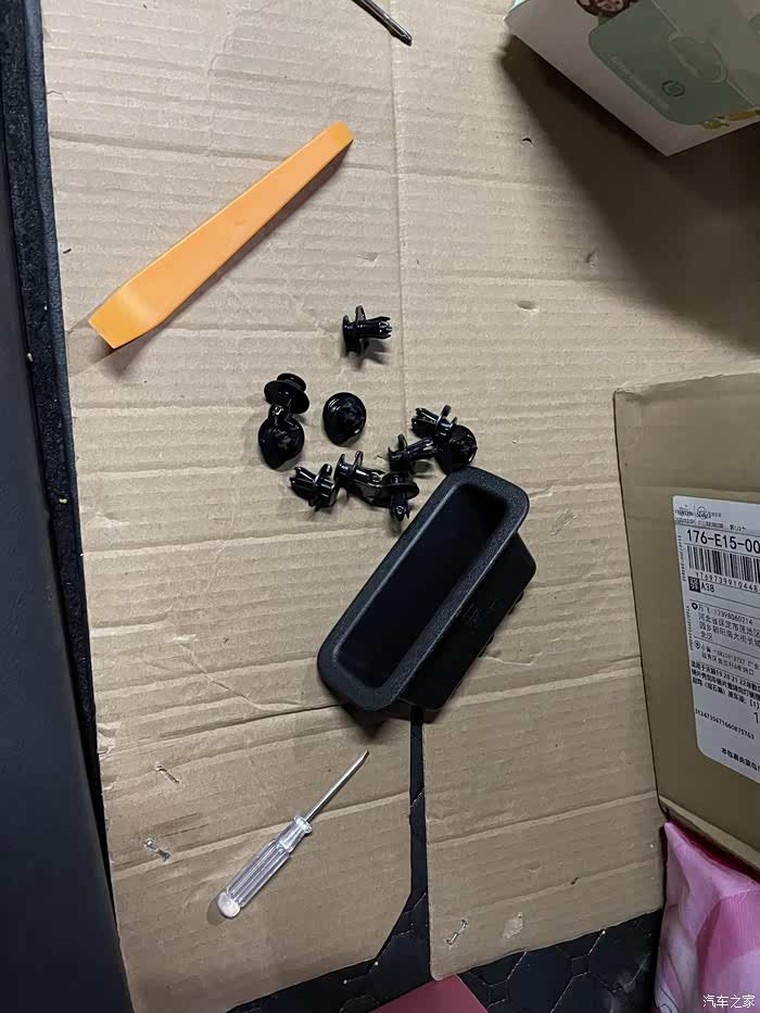 首先,将车子的后行李箱上的装饰板拆除,很简单 ,全部采用塑料卡扣,用一字螺丝刀很方便拆除。